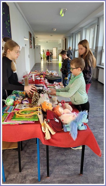 Dziękujemy wszystkim uczniom, rodzicom oraz pracownikom szkoły za zaangażowanie. Słowa podziękowania kierujemy zarówno do tych, którzy podarowali rękodzieło i rzeczy, które były przedmiotami sprzedaży jak i tym, którzy je nabyli.