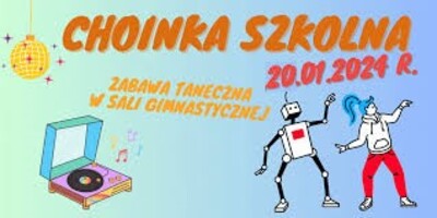 Rada Rodziców Naszej szkoły zaprasza całą społeczność szkolną oraz chętne dzieci młodsze na zabawę choinkową, która odbędzie się 20 stycznia 2024 r.(sobota) w godzinach od 14 do 19. Podczas zabawy przewidziany posiłek, niespodzianki oraz dobra zabawa.