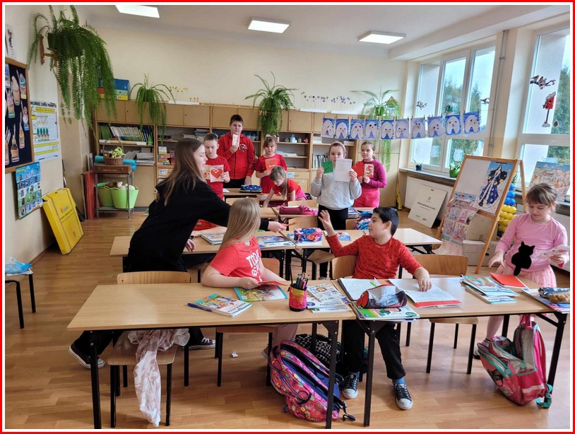 W czwartek 15 lutego w naszej szkole dostarczana była korespondencja Walentynkowa. Dziewczynki z klas VI – VIII działające w Szkolnym Samorządzie Uczniowskim we współpracy z Kołem Wolontariatu zajęły się wręczeniem kartek z miłymi i radosnymi wierszykami oraz serdecznymi życzeniami. Część kartek nadawcy zakupili w ramach akcji charytatywnej prowadzonej w naszej szkole w dniach poprzedzających Walentynki. Na uwagę zasługuje fakt, że uczniowie klasy VII pod kierunkiem p. Doroty Maciąg i p. Wiesławy Martyniuk wykonali samodzielnie część kartek, które zostały przekazane do sprzedaży. Cel był szczytny, gdyż fundusze uzyskane ze sprzedaży zostały przekazane na pomoc dla Hospicjum Santa Galla w Łabuńkach Pierwszych.
