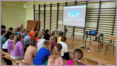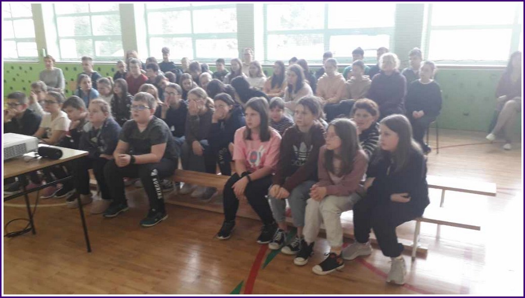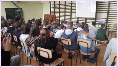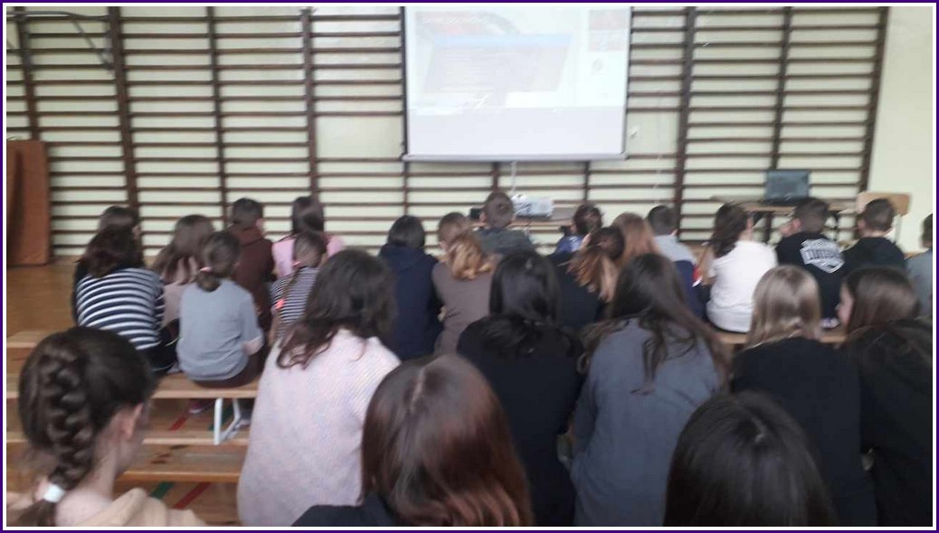 Uczniowie uczestniczyli w spotkaniach o tej samej tematyce „Ochrona danych i wizerunku w sieci” ale przekaz dostosowany był do młodszej oraz starszej grupy wiekowej i spotkania odbyły się w dwóch turach.