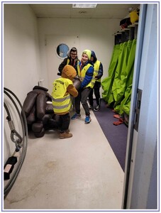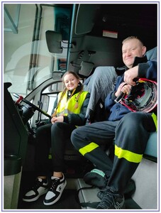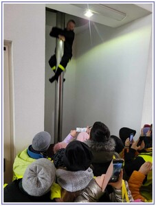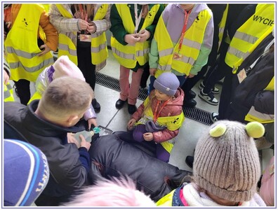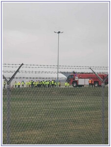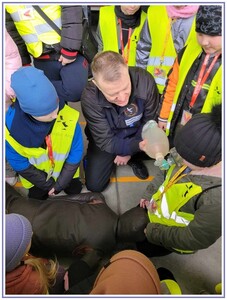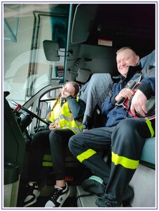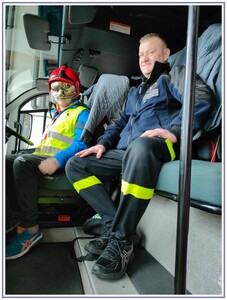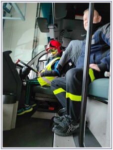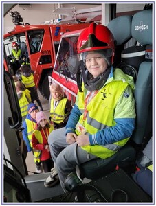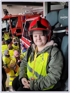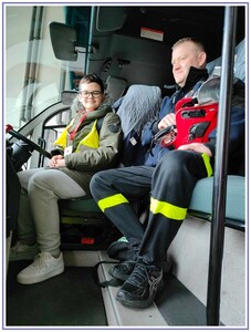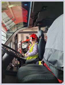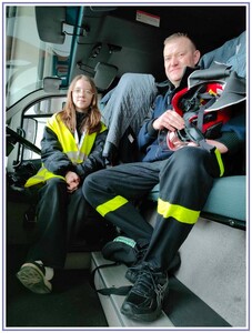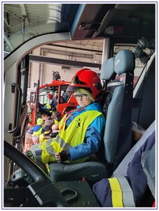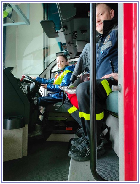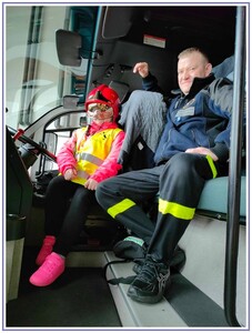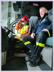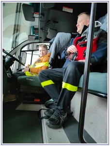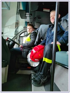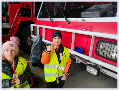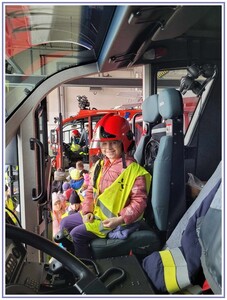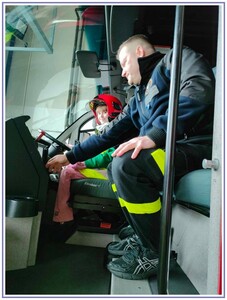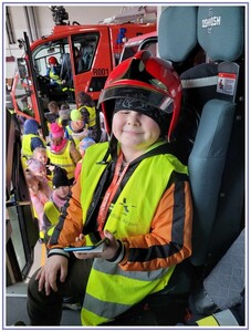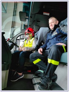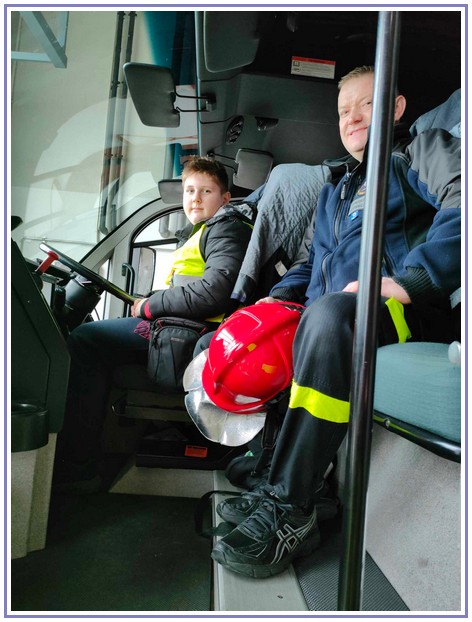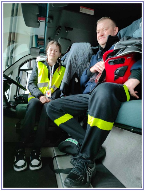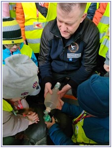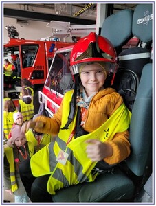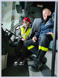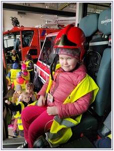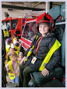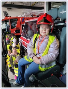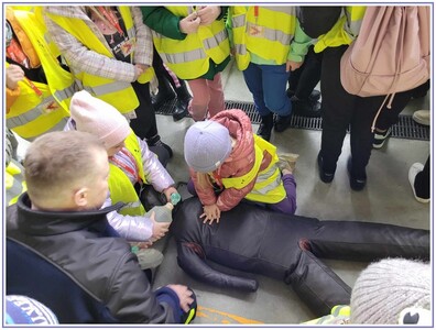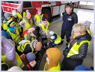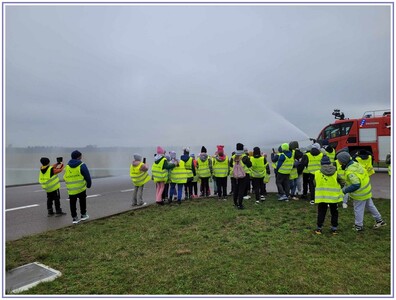 Ostatnim punktem zwiedzania portu była wizyta u Panów strażaków z Lotniskowej służby Ratowniczo-Gaśniczej, którzy zajmują się bezpieczeństwem na lotnisku oraz pasie startowym. Port lotniczy posiada swoje wozy strażackie i inny profesjonalny sprzęt, którym zabezpieczane jest lotnisko. Strażacy zademonstrowali dzieciom wyposażenie wozów strażackich oraz pokazali jak wygląda pierwsza pomoc pasażerom samolotu. Była to bardzo ciekawa i drogocenna lekcja.