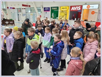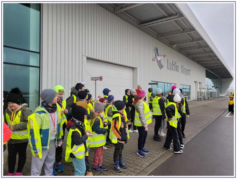 W środę 13 marca uczniowie klas I-V pod opieką wychowawczyń wybrali się na wycieczkę do Portu Lotniczego w Świdniku. Celem wycieczki było poznanie ogólnych zasad bezpieczeństwa obowiązujących na lotnisku, obserwacja odprawy bagażu i pobrania kart pokładowych, oraz obserwacja kontroli bezpieczeństwa. Zaraz po wejściu na lotnisko czekali na nas przewodnicy, którzy rozdali wszystkim uczestnikom specjalne przepustki. Uczniowie dowidzieli się czego nie należy wnosić na pokład samolotu, co zrobić aby odprawa przebiegała szybko i sprawnie. Ogromnym przeżyciem dla dzieci było to, że mogli obserwować start i lądowanie samolotów.