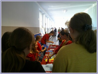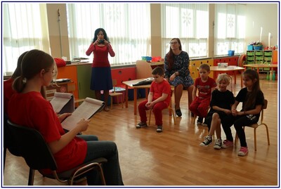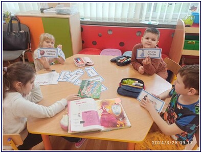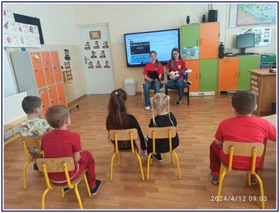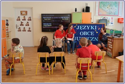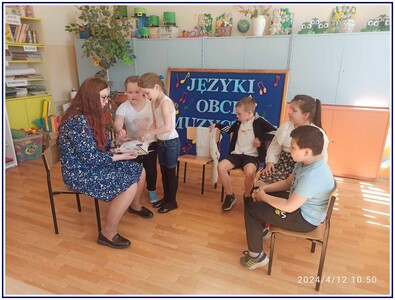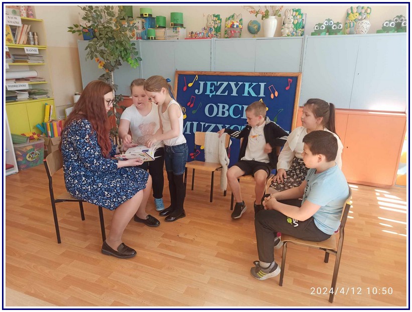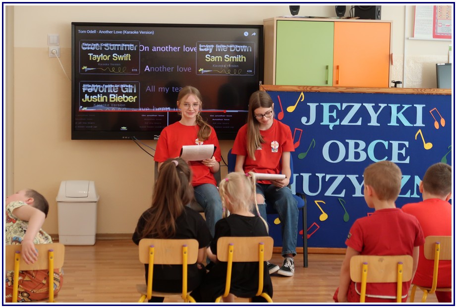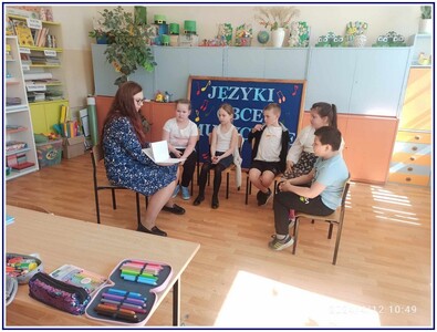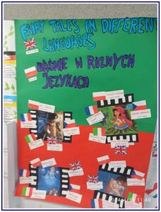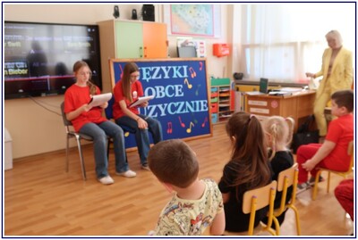 Języki obce były propagowane przez uczennice klasy VI, Jessicę i Karolinę, które czytały bajki w języku angielskim dla uczniów klasy 0. Były to „Little Red Riding Hood” (Czerwony Kapturek) i „Snow White” (Królewna Śnieżka). Nasi najmłodsi z zaciekawieniem wysłuchali bajek i wykonali przygotowane dla nich zadania.