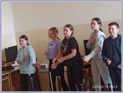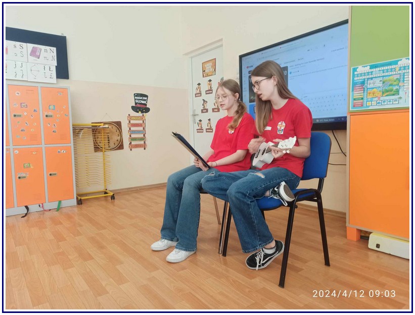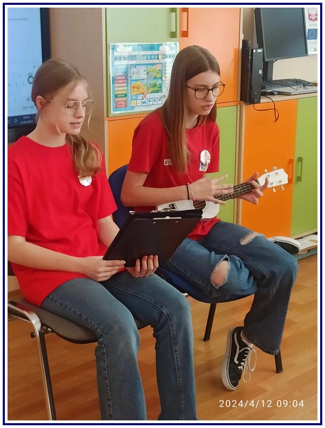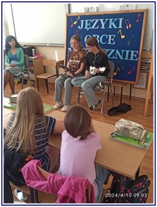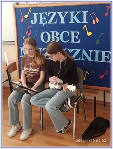 Jesteśmy pod wrażeniem zaangażowania uczniów w realizowane działania, chęci poszerzania horyzontów, podejmowania nowych wyzwań i dobrej energii. Dziękujemy uczniom klasy VIII, którzy zaangażowali się w przygotowanie Dnia Języków Obcych, zarówno za oprawę merytoryczną jak i wystrój. Szczególne podziękowania kierujemy dla Mai i Pauliny, uczennic klasy VIII za przygotowanie piosenek w językach angielskim i rosyjskim, oraz grę na ukulele. Słuchacze spontanicznie przyłączali się do śpiewu i tańca, bili brawa okazując swoje zainteresowanie występem, próbowali śpiewać w języku rosyjskim, pomimo że jeszcze nie wszyscy się go uczą.