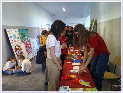 · Akcja szkolna "Fairy Tales for Kids -Poczytajmy Młodszym". Akcja językowa zorganizowana we współpracy z biblioteką szkolną. W najbliższym czasie zorganizowana zostanie również druga edycja akcji ‘Poczytajmy młodszym’- w języku rosyjskim.