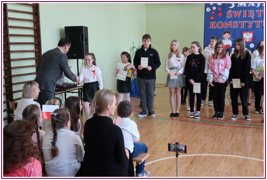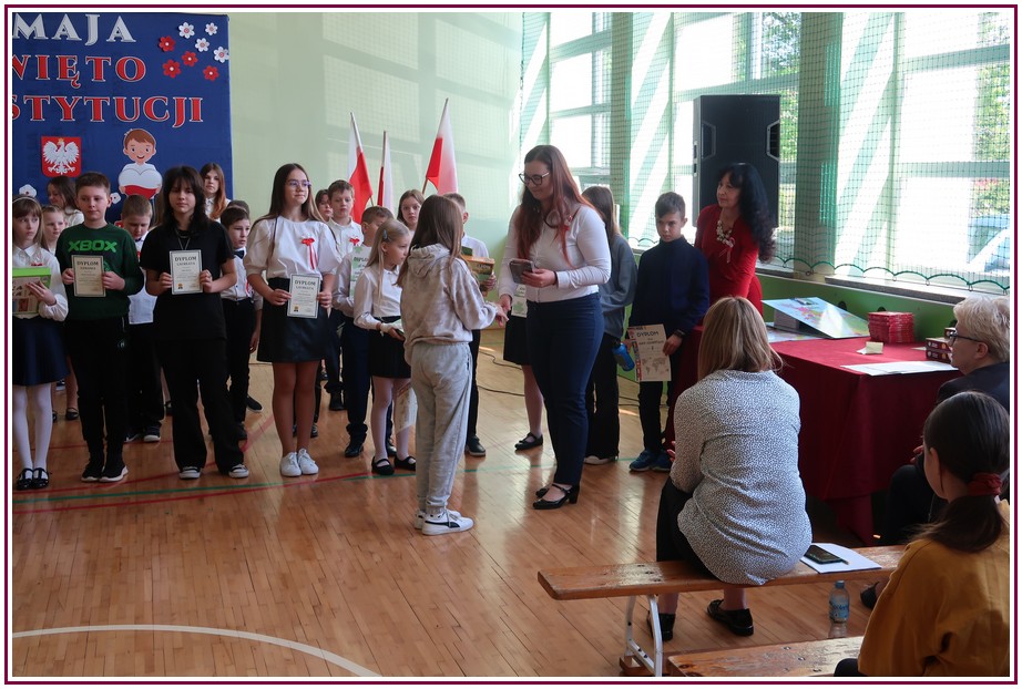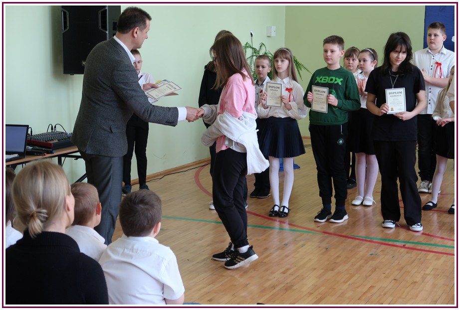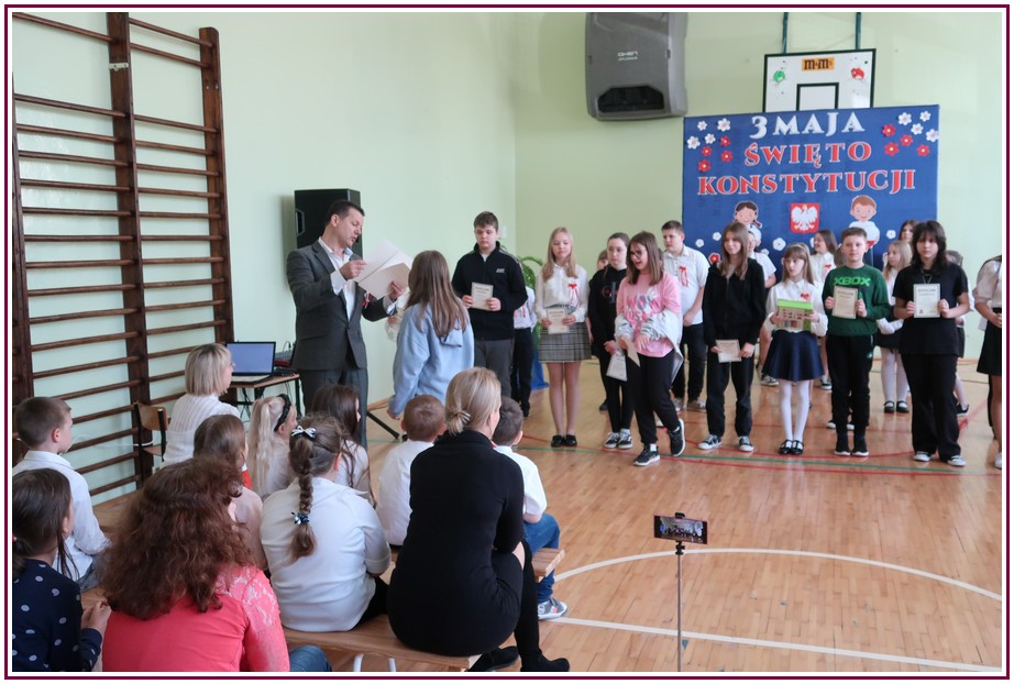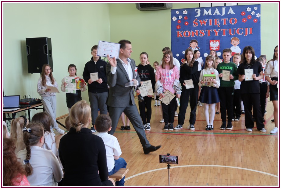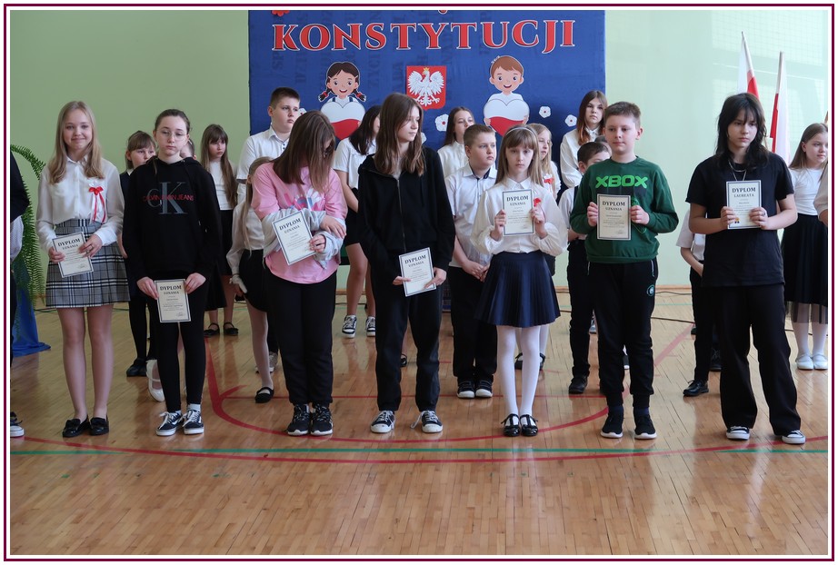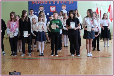 W ostatnim czasie w naszej szkole odbyły się konkursy wewnątrzszkolne przeprowadzone przez nauczycieli języków obcych p. Patrycję Pytel-Sulejczak oraz p. Wiesławę Martyniuk (szczegóły podjętych działań zostały opisane w poprzednich artykułach). Uczniowie bardzo chętnie zaangażowali się do udziału, z czego jesteśmy bardzo dumni. Nagrody oraz podziękowania zostały przekazane uczniom po uroczystym apelu z okazji rocznicy uchwalenia Konstytucji 3 Maja. Poniżej przedstawiamy listę laureatów, wyróżnionych oraz wszystkich nagrodzonych uczestników.