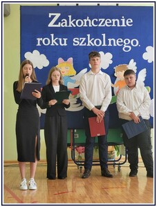 Dnia 21 czerwca w naszej szkole odbyło się zakończenie roku szkolnego 2023/2024. Uroczystość rozpoczęła się mszą świętą podczas, której uczniowie, nauczyciele i rodzice zgromadzili się w kościele, aby wspólnie podziękować za miniony rok, prosić o błogosławieństwo na wakacje i nowy etap życia.