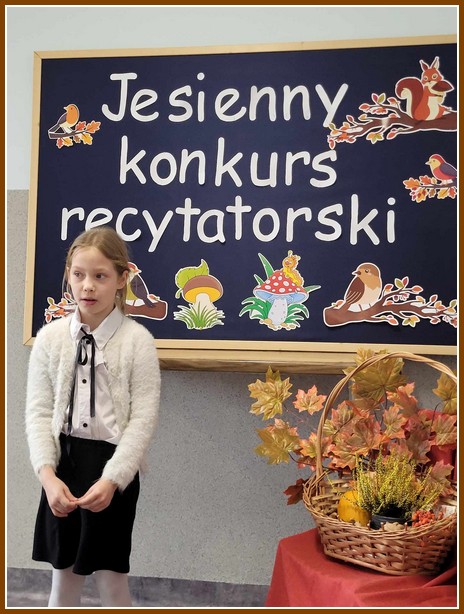 W środę 3 października w naszej szkole przeprowadzono eliminacje do 28 edycji Jesiennego Konkursu Recytatorskiego, w których zostali wyłonieni uczestnicy do etapu gminnego. Młodsi uczniowie prezentowali swoje umiejętności recytatorskie przed komisją oraz rówieśnikami. W klasach starszych natomiast, nauczyciele poloniści wyłonili uczestników podczas zajęć. Temat tegorocznej edycji konkursu brzmi „Bajki, baśnie, legendy…” .