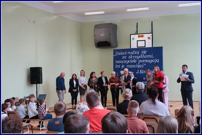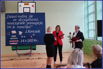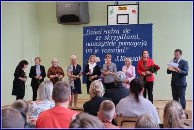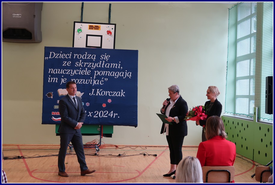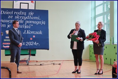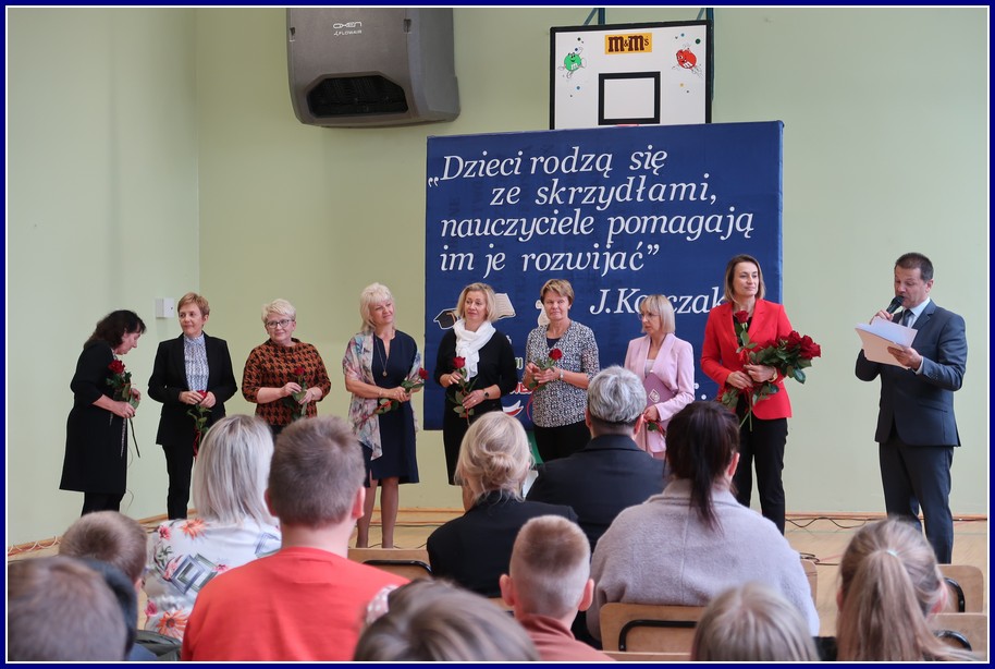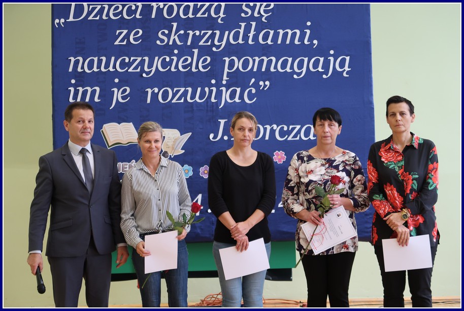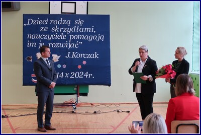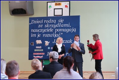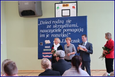 Po występie naszych młodych artystów głos zabrali Pan Dyrektor i zaproszeni goście Pani Wójt Gminy Trzeszczany Aneta Karpiuk, a także Przewodnicząca Rady Rodziców naszej szkoły Pani Adriana Marciniak. Wszyscy w swoich przemówieniach życzyli nauczycielom i pracownikom szkoły zdrowia, wielu sukcesów oraz zadowolenia z wykonywanego zawodu. Kolejnym punktem było przyznanie nagród Wójta Gminy Trzeszczany, które otrzymali: p. Marzena Łacińska – Baran, p. Dorota Błaszczuk, p. Ewelina Kruk, p. Mariusz Adamczuk oraz ks. Jarosław Przyczyna. Pan Dyrektor przyznał nagrody wszystkim nauczycielom oraz pracownikom niepedagogicznym. Serdecznie gratulujemy wszystkim nagrodzonym oraz życzymy aby radosny nastrój, który miał miejsce podczas uroczystości towarzyszył nauczycielom i pracownikom szkoły przez cały rok szkolny! J