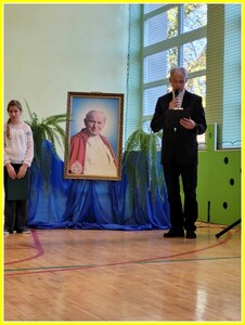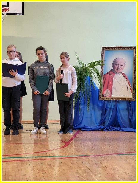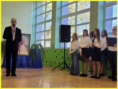 Dzień Papieski jest uroczystością, która została na stałe wpisana do kalendarza uroczystości w naszej szkole. W tym roku uczciliśmy go w piątek 18 października. Grupa uczniów z klas V – VIII pod kierunkiem Ks. Proboszcza Jarosława Przyczyny oraz w oprawie muzycznej wykonanej przez Pana Arkadiusza Pydysia przedstawiła montaż słowno- muzyczny, w którym został zaprezentowany zarys biograficzny Karola Wojtyły – Wielkiego Polaka.