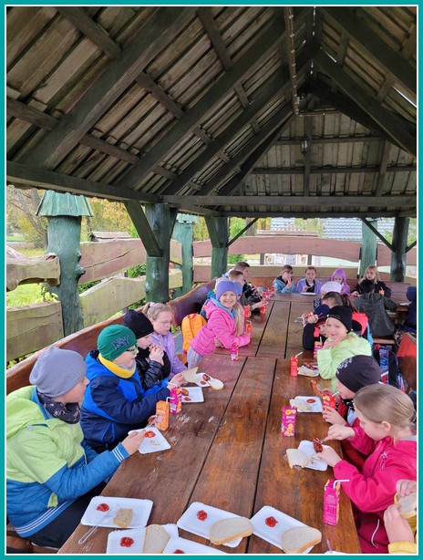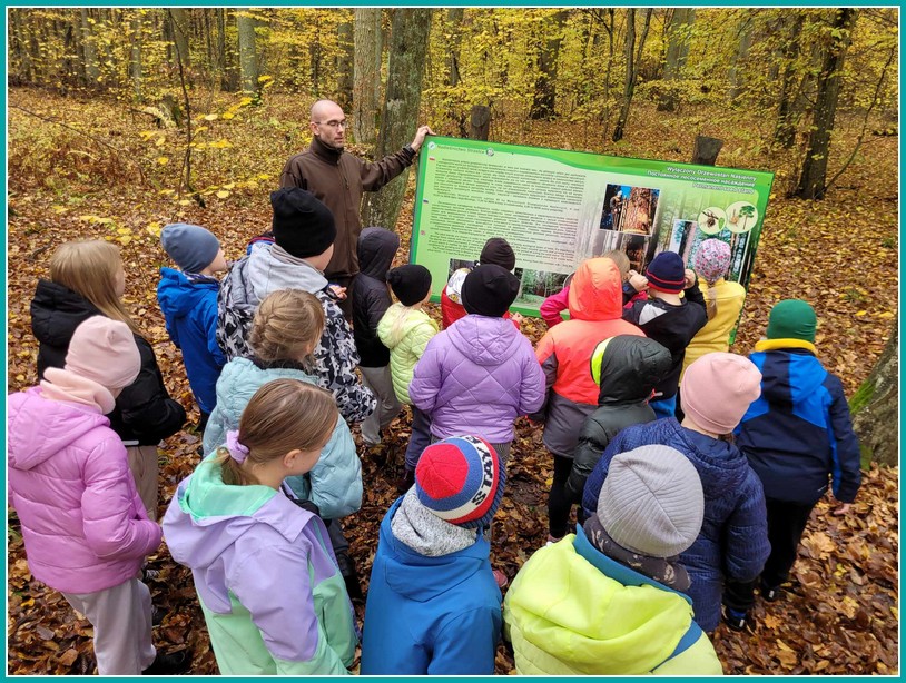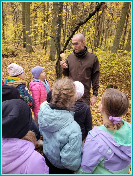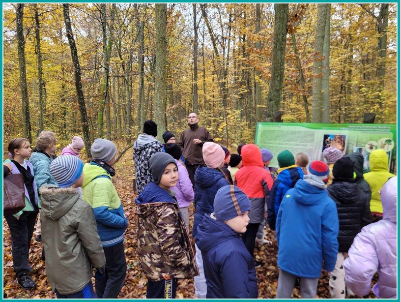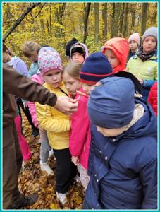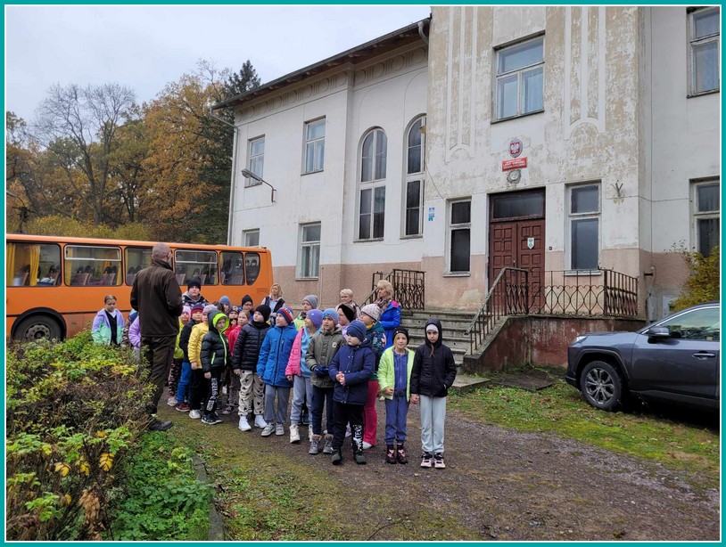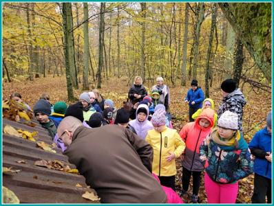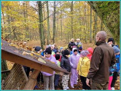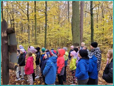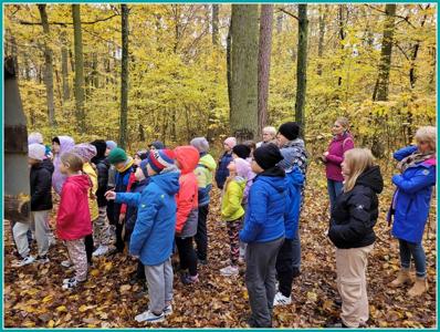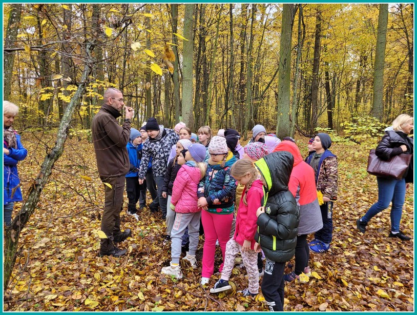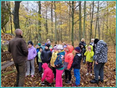 W środę 30 października uczniowie klas I – IV pod opieką wychowawczyń wybrali się na wycieczkę do lasu w Maziarni Strzeleckiej. Na miejscu pod przewodnictwem leśnika dzieci przespacerowały się leśną ścieżką edukacyjną. Podczas spaceru edukator leśny Nadleśnictwa Strzelce opowiadał uczniom o zmianach zachodzących w lesie jesienią, o tym w jaki sposób dzikie zwierzęta zamieszkujące w lasach przygotowują się do zimy oraz pokazał i scharakteryzował poszczególne warstwy lasu i powiedział kto nich zamieszkuje. Opowiedział dzieciom również o zagrożeniach czyhających w lesie, omówił zasady zachowania w tym miejscu. Podczas spaceru dzieci znalazły grzyby jadalne, a leśnik opowiadał o zagrożeniach związanych ze zbieraniem grzybów trujących. Była to bardzo ciekawa i pouczająca lekcja, a spacer bardzo pozytywnie wpłynął na samopoczucie wszystkich uczestników wycieczki.