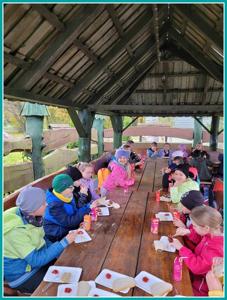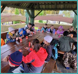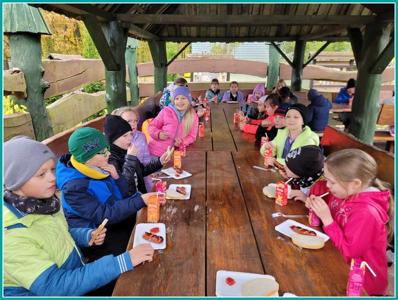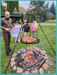 Następnie udaliśmy się do szkółki leśnej gdzie odbyło się ognisko, na którym upiekliśmy i z apetytem zjedliśmy pyszne kiełbaski. Dzieci miały czas pobiegać i zintegrować się na świeżym powietrzu. Wyjazd został zaliczony do bardzo udanych.