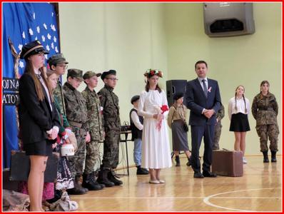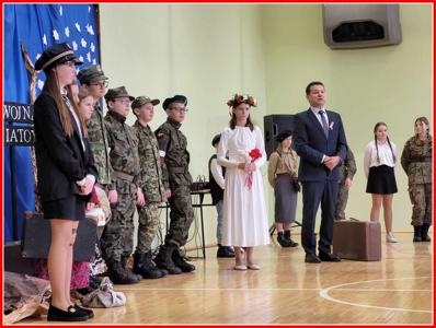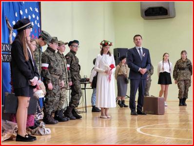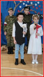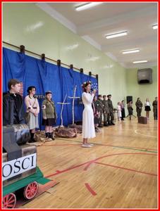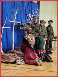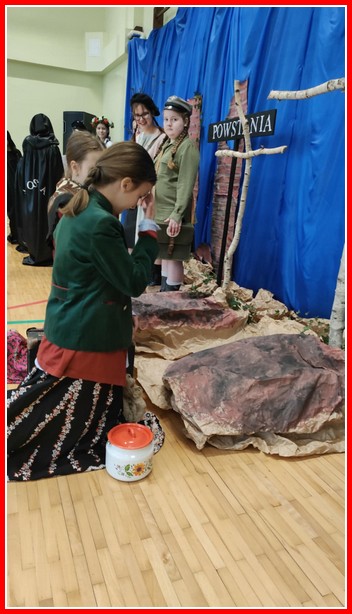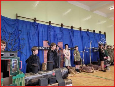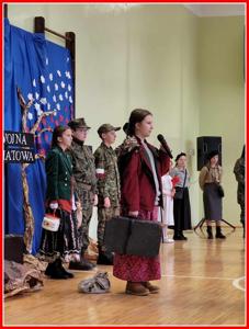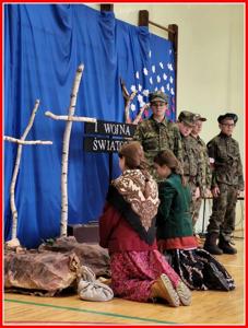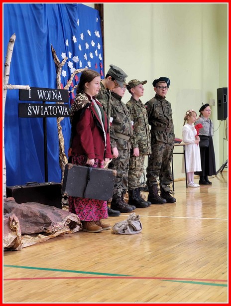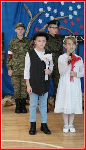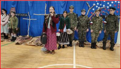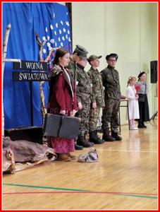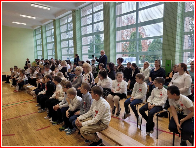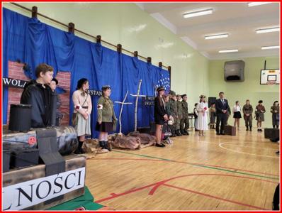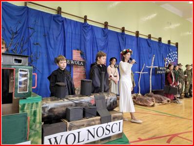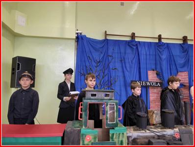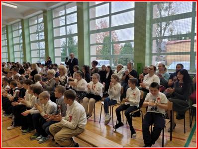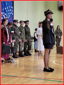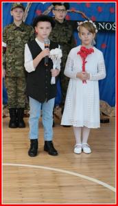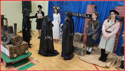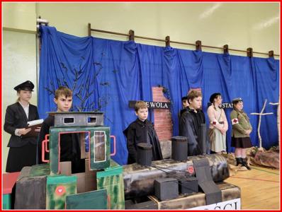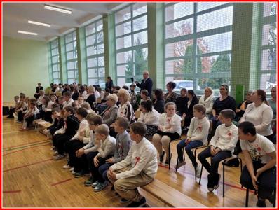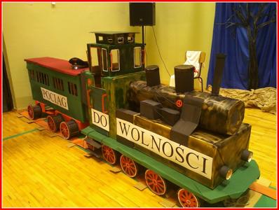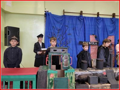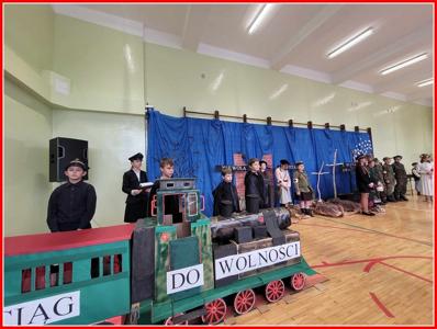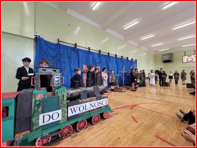 Inscenizacja w wykonaniu uczniów naszej szkoły stanowiła końcowy element trwających obchodów związanych ze Świętem Niepodległości. Podczas przedstawienia uczniowie zabrali widzów w krótką podróż opowiadającą koleje losów Ojczyzny. Sztuka nosiła tytuł „Pociąg do wolności…” Dzieci przedstawiły stacje na których opowiadały o kolejnych wydarzeniach w trudnej historii Polski pod zaborami. Recytacja, stroje dopasowane do tematyki oraz dekoracja wprowadziły publiczność w podniosły nastrój. Była to niezwykła podróż, która odbyła się na tle scenografii z wyjątkowym pociągiem. Uczniowie przypomnieli swoim koleżankom i kolegom o naszej trudnej drodze do niepodległości, przywołali najważniejsze wydarzenia, które uwolniły nas spod zaborów i dały upragnioną wolność. Recytowane wiersze, pieśni patriotyczne uwypukliły znaczenie Narodowego Święta Niepodległości. Dopełnieniem była oprawa muzyczna w wykonaniu solistów oraz zespołu wokalnego. Młodzi artyści przypomnieli nam, że wolność i niepodległość raz osiągnięte nie są dane na zawsze, należy wciąż dbać o te wartości i stale je pielęgnować. Miło nam było gościć wśród widowni przedstawicieli Rodziców, którym składamy słowa wdzięczności za współpracę, zaangażowanie i ciepłe słowa.