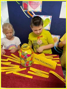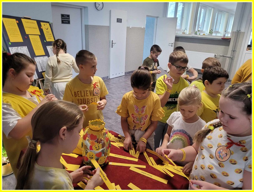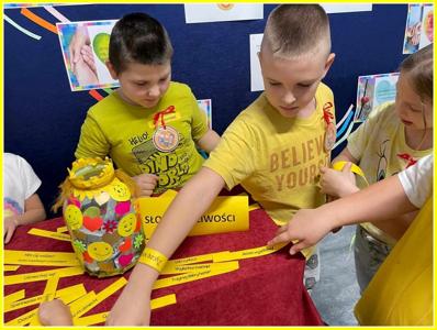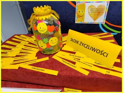 Uczniowie przez cały dzień zapełnili dobrymi myślami i cytatami Słoik Życzliwości, którego zawartość trafiła do adresatów. Uczniowie otrzymali również opaski z życzliwymi sentencjami.