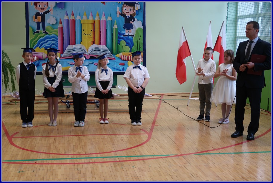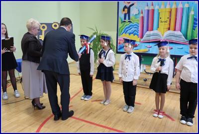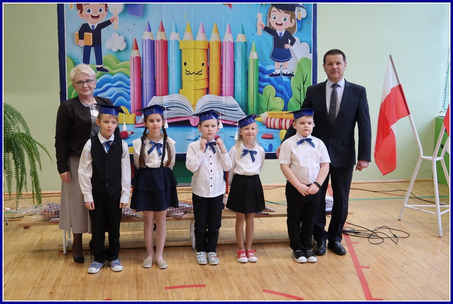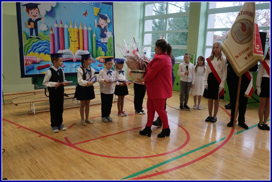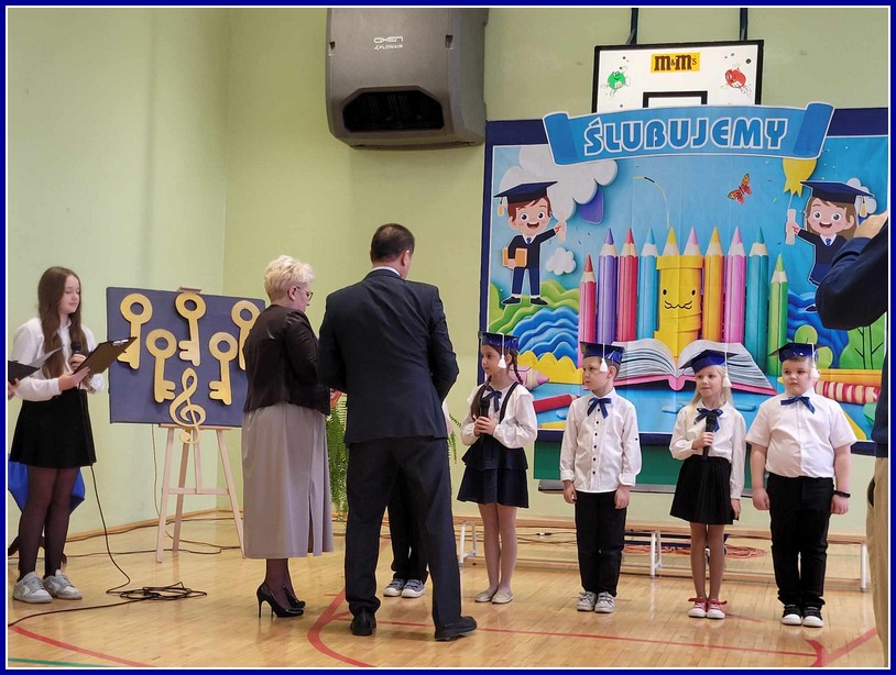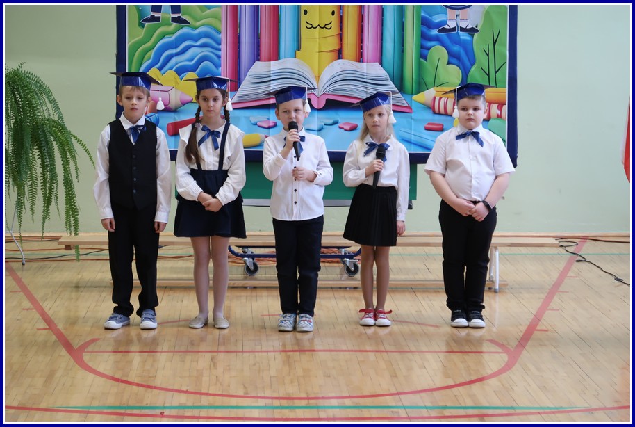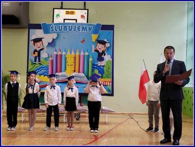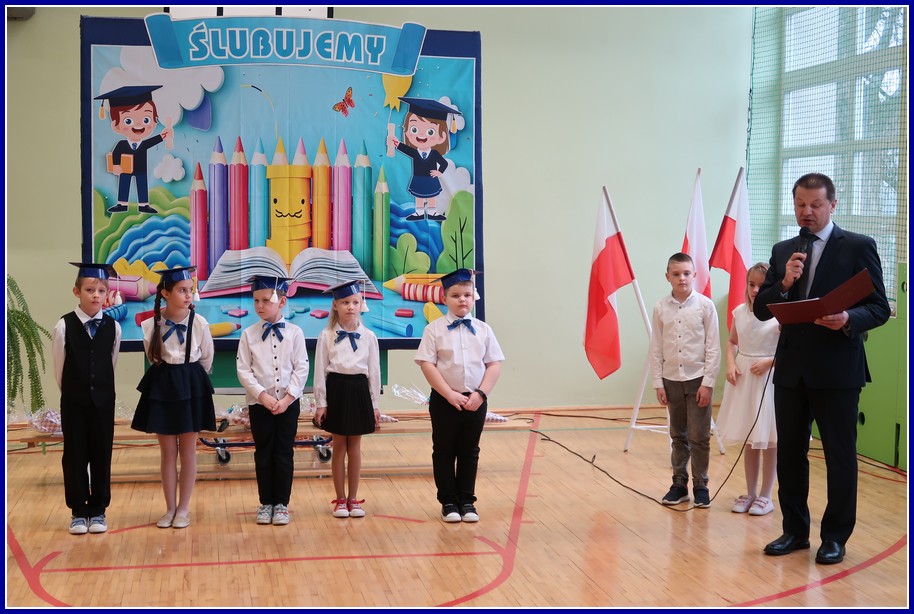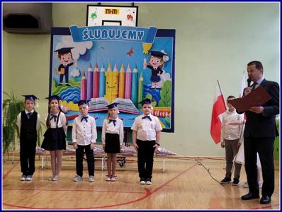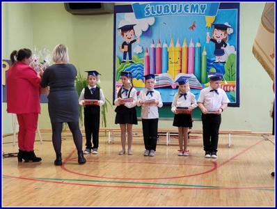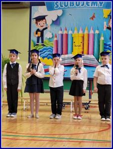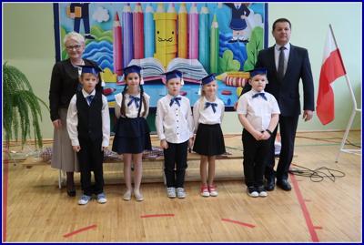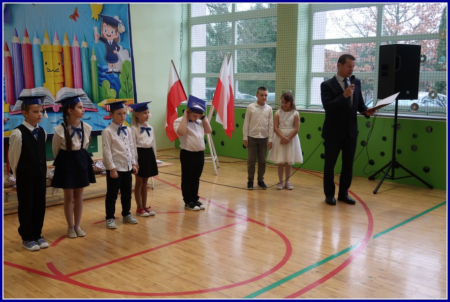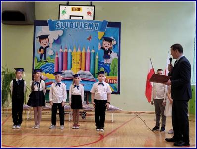 Na zakończenie akademii głos zabrał Pan dyrektor, który gratulował najmłodszym wspaniałego występu, a także życzył im wielu sukcesów w szkole. Był to dla pierwszoklasistów wspaniały dzień, pełen pozytywnych wrażeń, który z pewnością pozostanie na zawsze w ich pamięci.