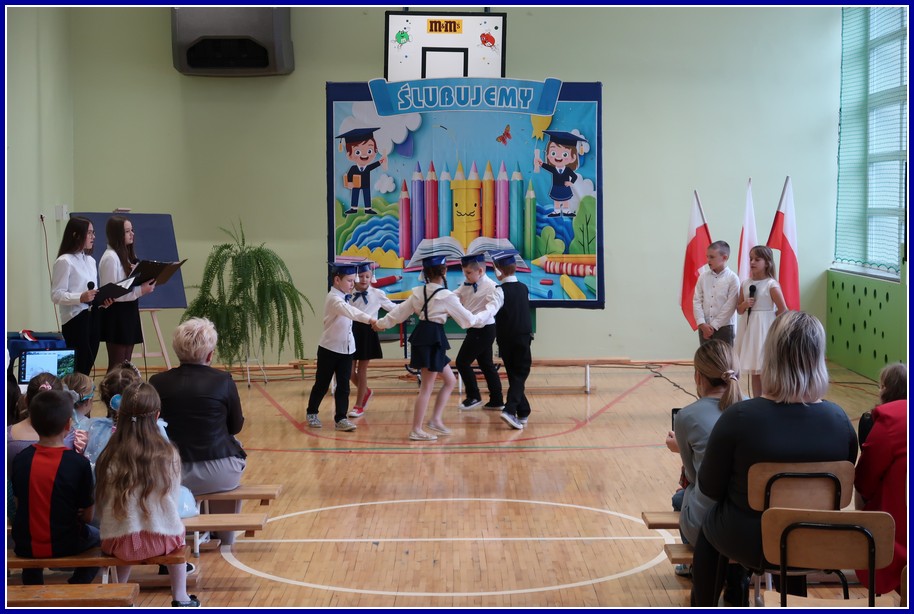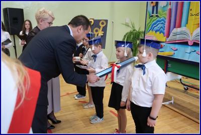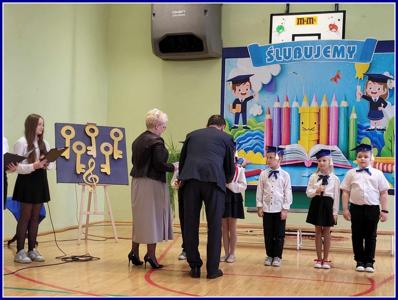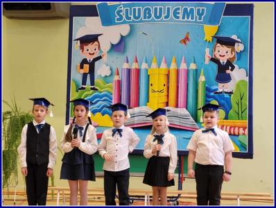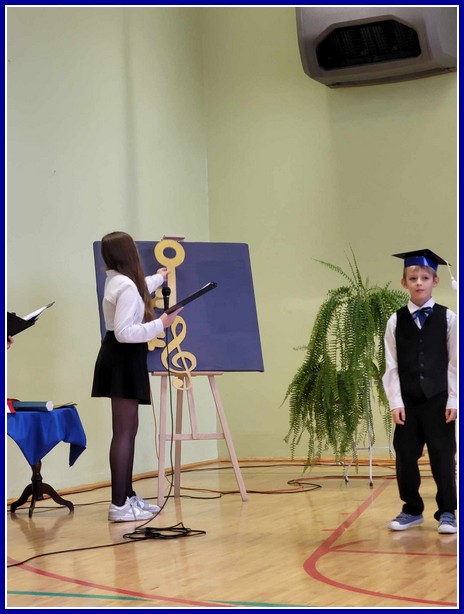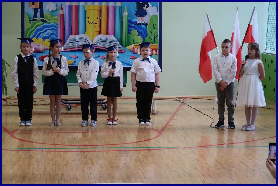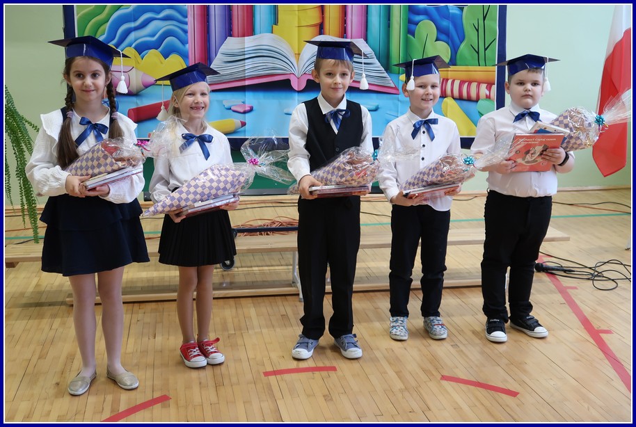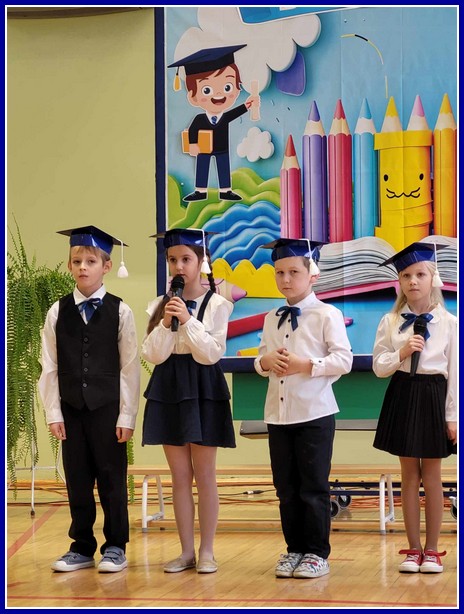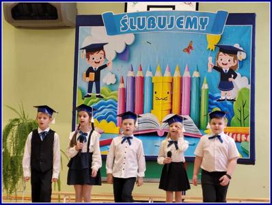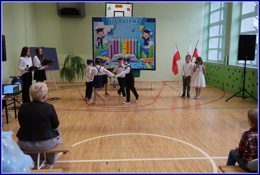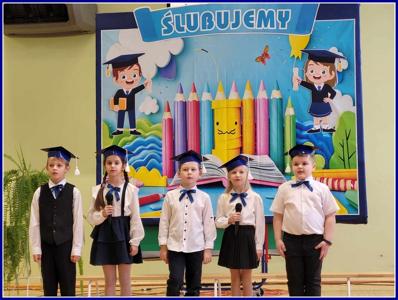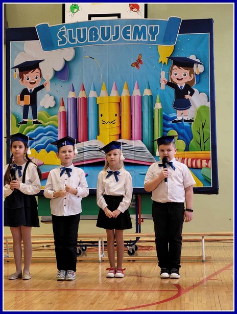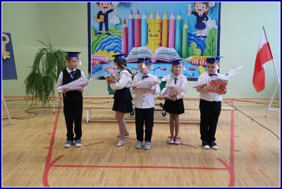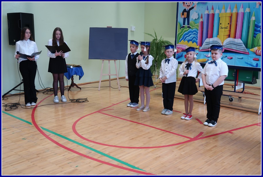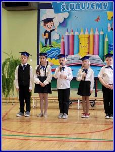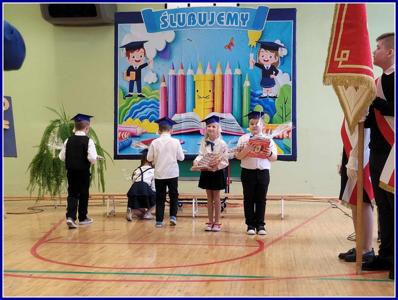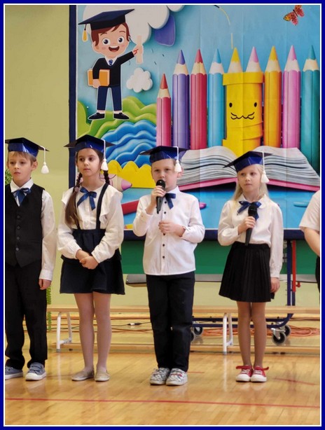 Na zakończenie akademii głos zabrał Pan dyrektor, który gratulował najmłodszym wspaniałego występu, a także życzył im wielu sukcesów w szkole. Był to dla pierwszoklasistów wspaniały dzień, pełen pozytywnych wrażeń, który z pewnością pozostanie na zawsze w ich pamięci.