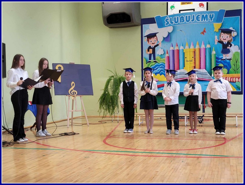 Pierwszoklasiści Szkoły Podstawowej im. Stefana Żeromskiego w Nieledwi są już pełnoprawnymi uczniami. Dnia 28 listopada 2024r. odbyło się w naszej szkole uroczyste ślubowanie i pasowanie na ucznia. Zanim doszło do ślubowania uczniowie musieli zaprezentować czego do tej pory nauczyli się i prezentacja ta wyszła im doskonale.