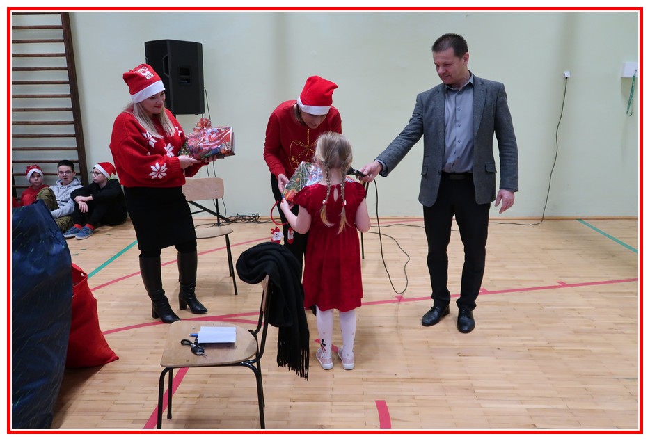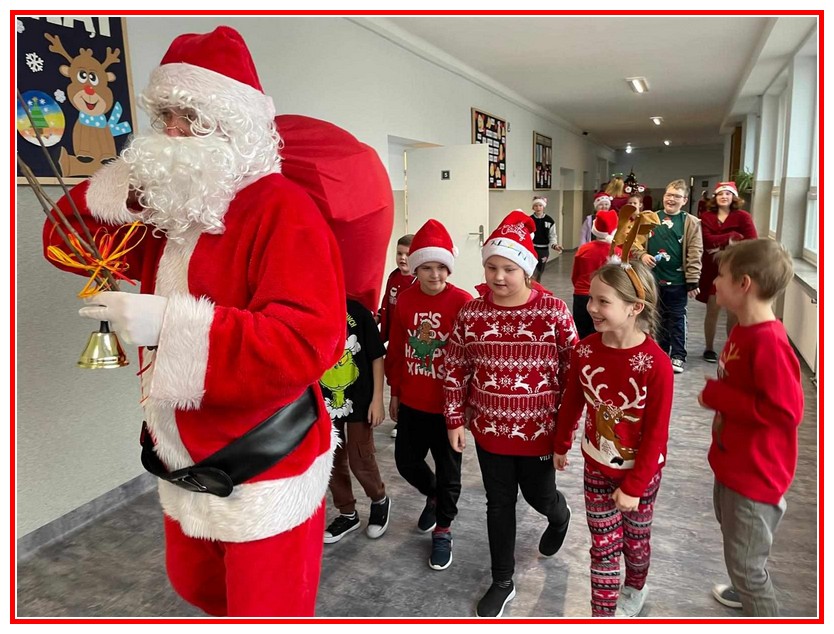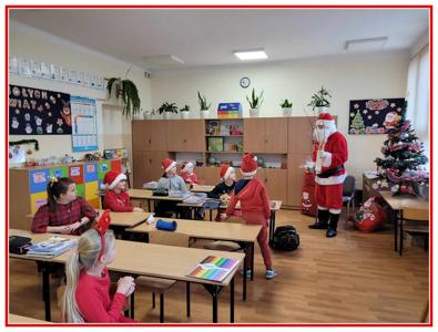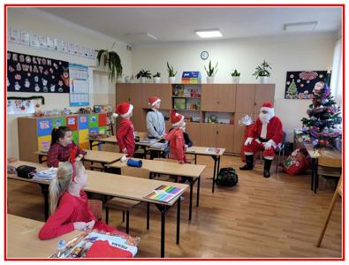 Świętowaliśmy od samego rana, gdyż tuż po pierwszym dzwonku odwiedziła nas Pani Wójt Gminy Trzeszczany Aneta Karpiuk, która wręczyła piękne podarki wszystkim uczniom naszej szkoły. Wizyta ta wprowadziła wszystkich w miły, mikołajkowy klimat. Następnie wszyscy uczniowie udali się do swoich klas, gdzie oczekiwały na nich dalsze atrakcje, były nimi mikołajkowe zabawy, zadania do wykonania i wizyta najważniejszego tego dnia gościa, czyli Świętego Mikołaja. Nasz wyjątkowy gość odwiedził wszystkie klasy, odbył wesołe rozmowy z uczniami i oczywiście podarował prezent każdemu, co wywołało niesamowitą radość.