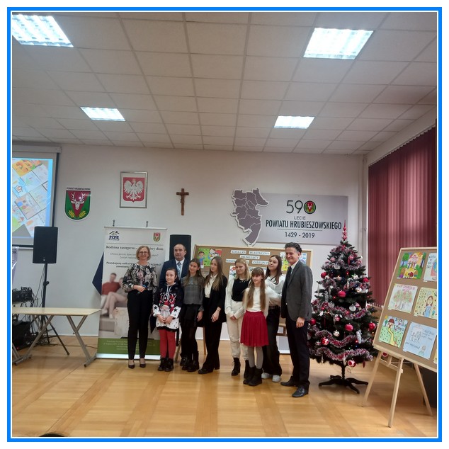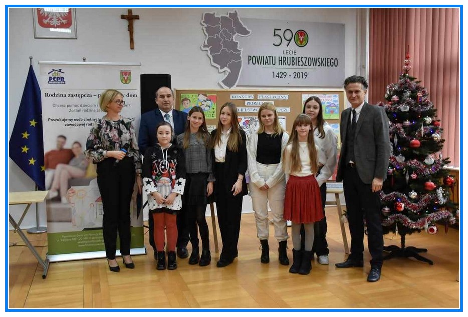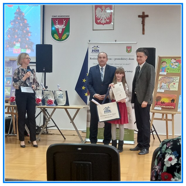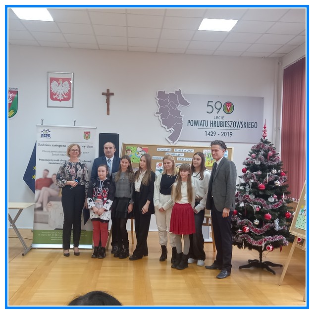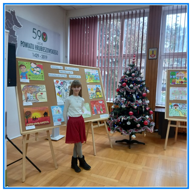 W dniu 12 grudnia w Starostwie Powiatowym w Hrubieszowie odbyło się rozstrzygnięcie konkursu plastycznego na plakat promujący rodzicielstwo zastępcze. Naszą szkołę reprezentowały prace dwóch uczennic Elizy Pasieki (kl. IV), która zajęła drugie miejsce, a jej rysunek został umieszczony w kalendarzu Starostwa Powiatowego. Drugą uczennicą reprezentującą naszą szkołę była Oliwia Mroczkowska (kl. VIII),która otrzymała podziękowanie za udział w konkursie. Serdecznie gratulujemy obu dziewczynkom wspaniałych osiągnięć.