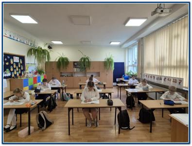 Uczniowie podeszli do tego wydarzenia bardzo poważnie – wszyscy przyszli do szkoły ubrani na galowo, z dużym zaangażowaniem i skupieniem przystępując do swojego pierwszego egzaminu. Był to niewątpliwie ważny dzień – pełen emocji, pierwszych egzaminacyjnych doświadczeń i satysfakcji z własnych umiejętności.