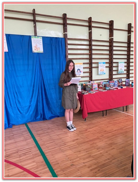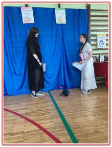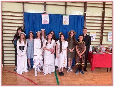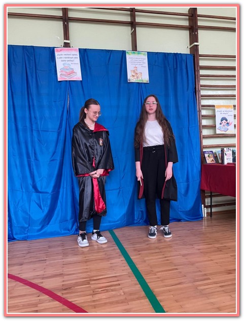 Zainteresowaniem cieszyła się także prezentacja postaci literackich – uczniowie przygotowali przebrania oraz krótkie wystąpienia, dzięki którym bohaterowie książek dosłownie ożyli na naszej scenie.