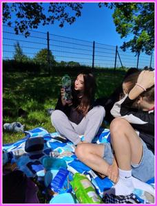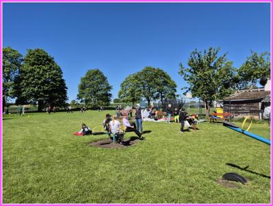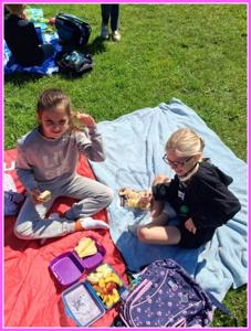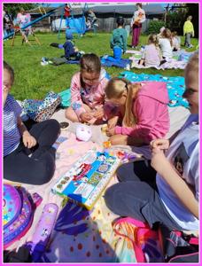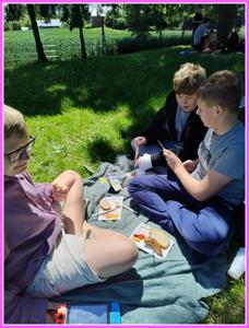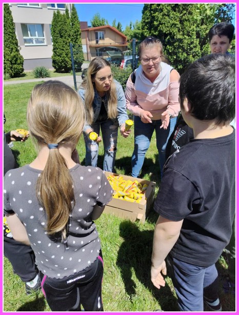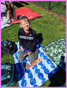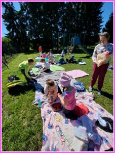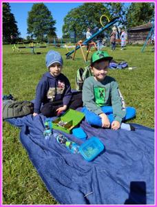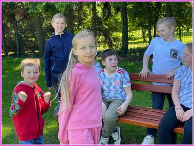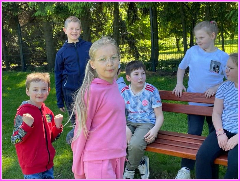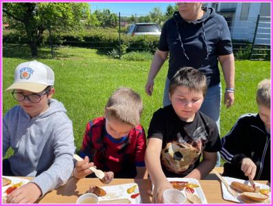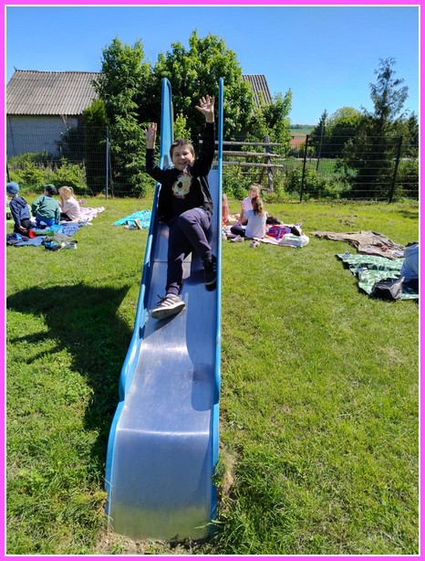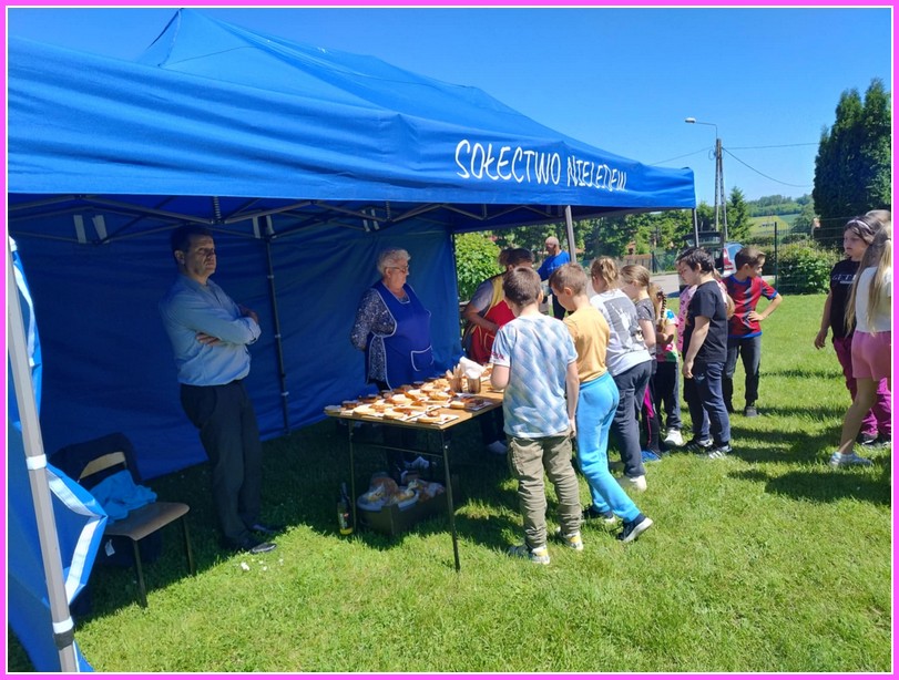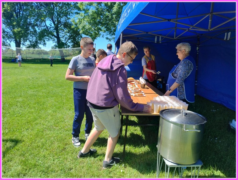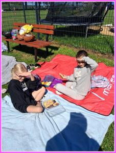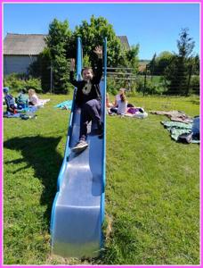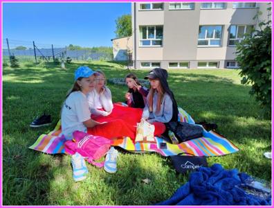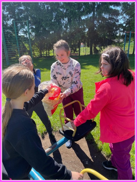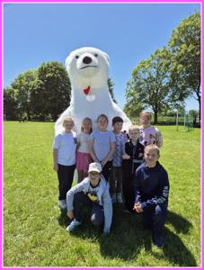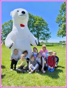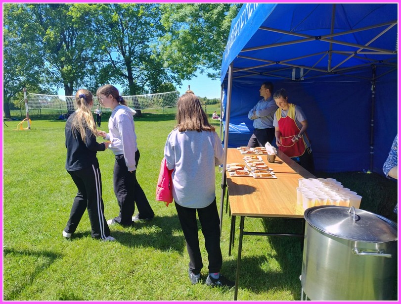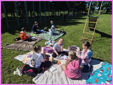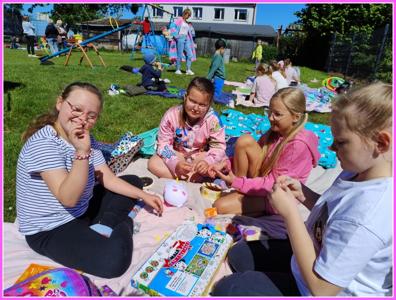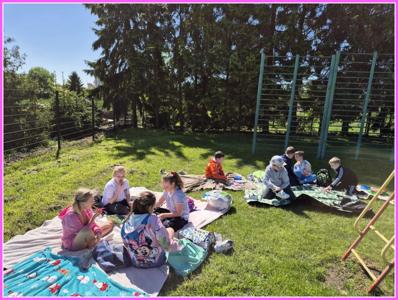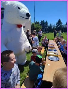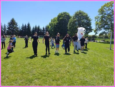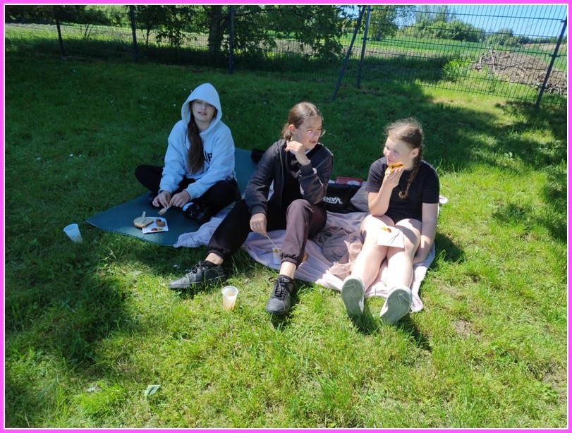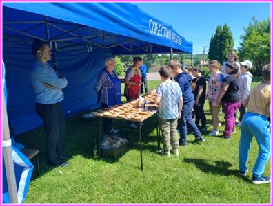 Wszystkie klasy miały również okazję do wspólnego piknikowania, co sprzyjało integracji i budowaniu szkolnej wspólnoty. Zamiast tradycyjnego obiadu, czekała na wszystkich pyszna grillowana kiełbaska, a na deser – niespodzianki przygotowane przez Radę Rodziców: lody i muffinki, które zachwyciły wszystkich obecnych. Szczególną atrakcją był wielki biały miś, który odwiedził naszą szkołę, wywołując ogromną radość, mnóstwo śmiechu i pozytywnych emocji .