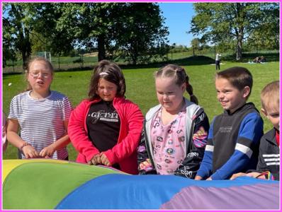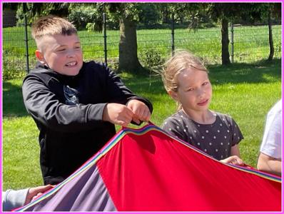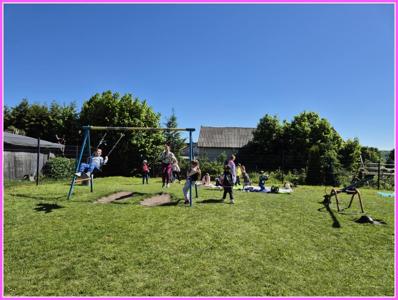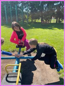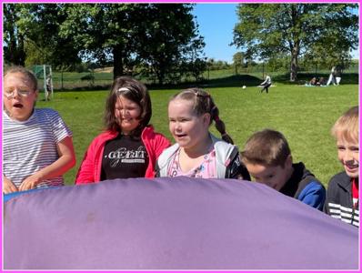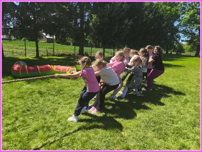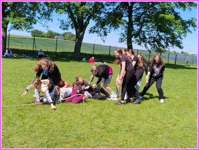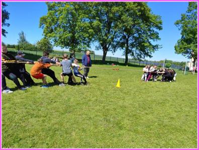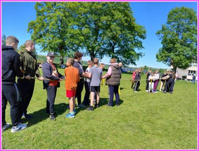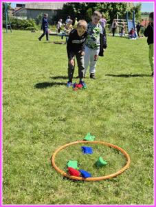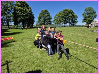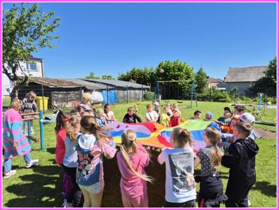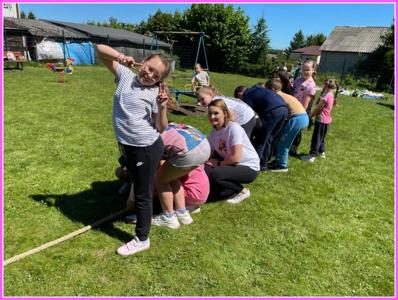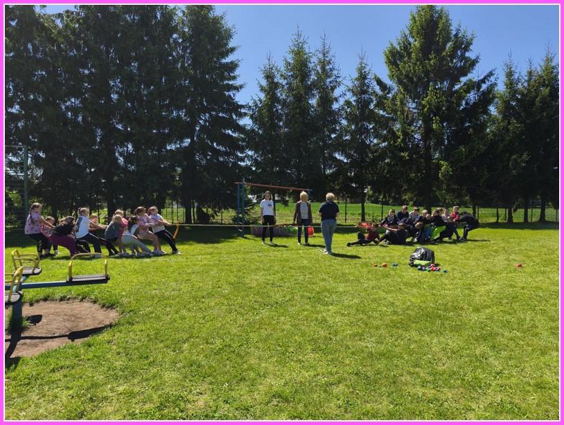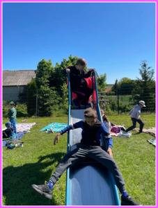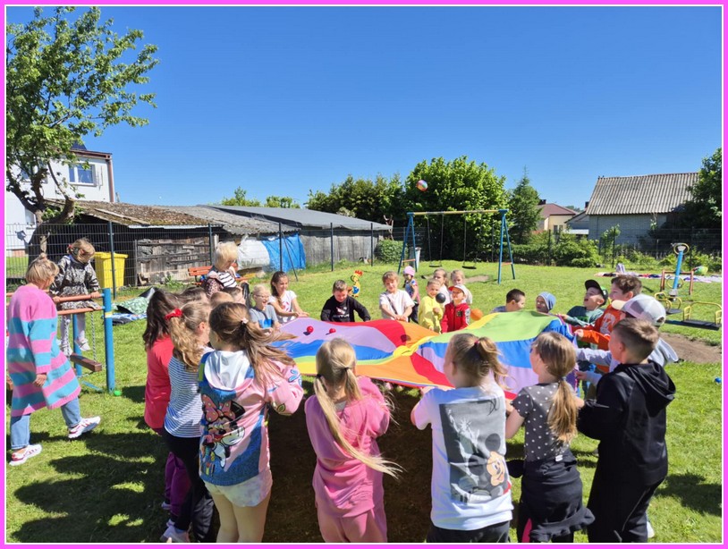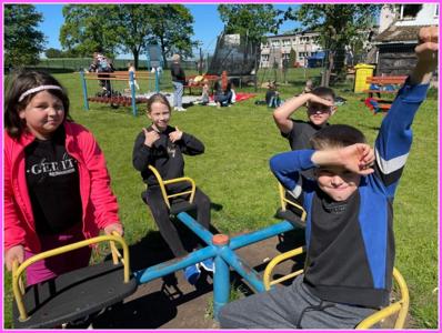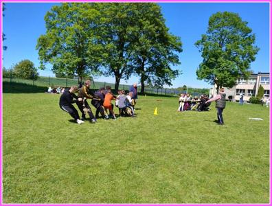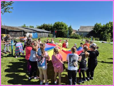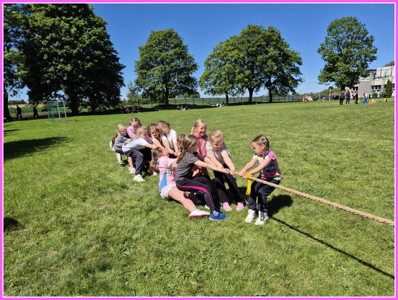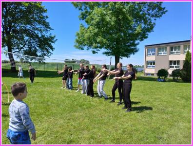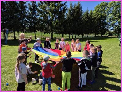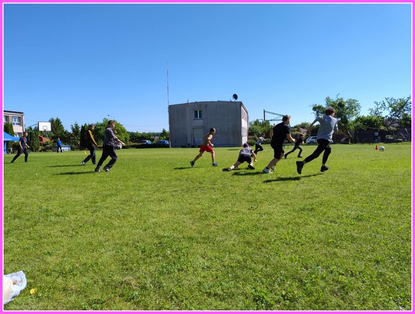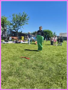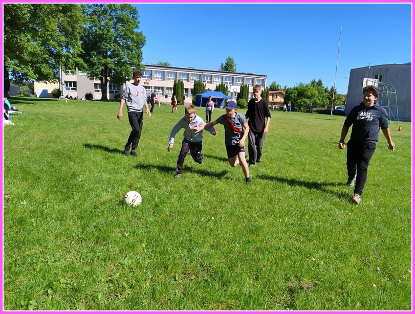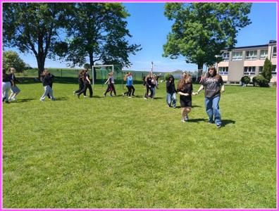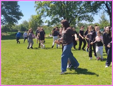 Uczniowie młodszych klas 0–III uczestniczyli w zabawach i grach na placu zabaw, które dostarczyły im mnóstwo uśmiechu i wspaniałych wrażeń. Na szkolnym boisku natomiast odbyły się emocjonujące rozgrywki i zawody sportowe dla klas IV–VIII. Nie zabrakło też wspólnego tańca – uczniowie starszych klas z entuzjazmem zatańczyli belgijkę, wypełniając boisko rytmem i energią.
