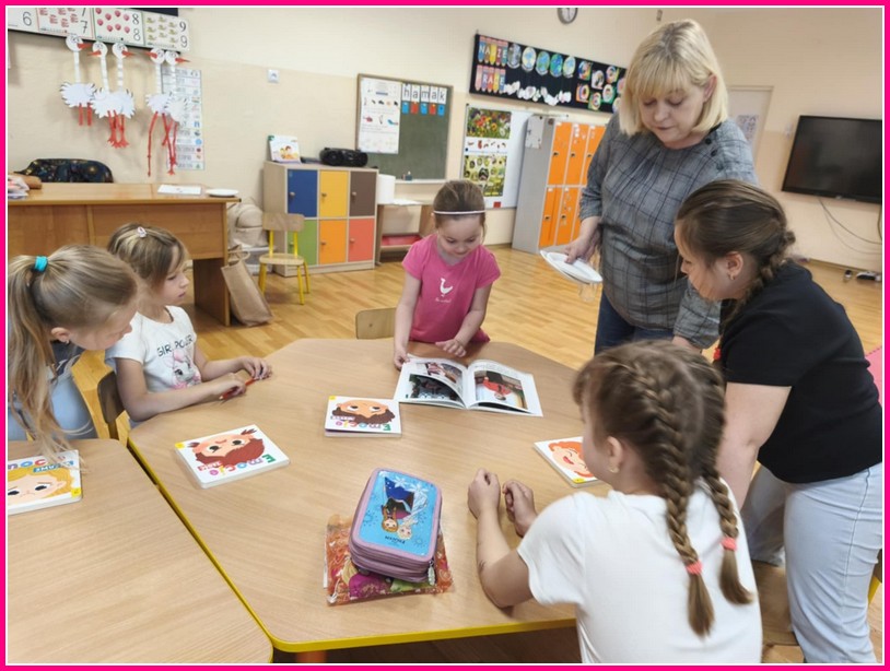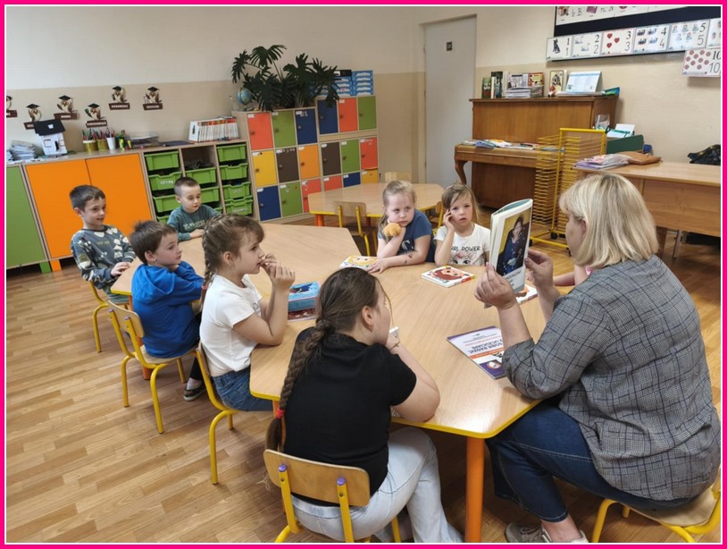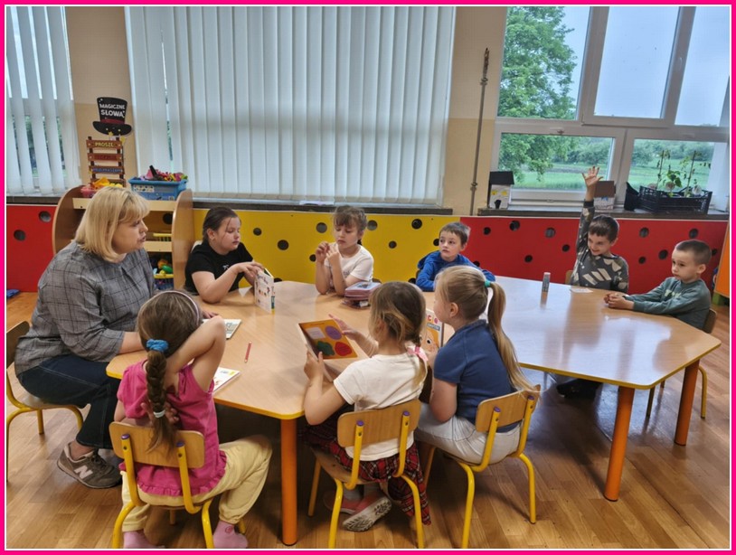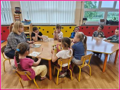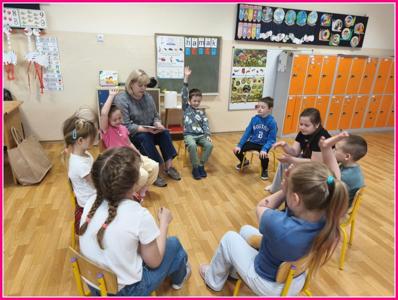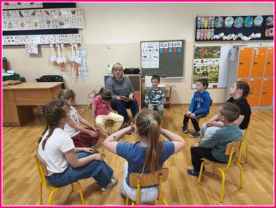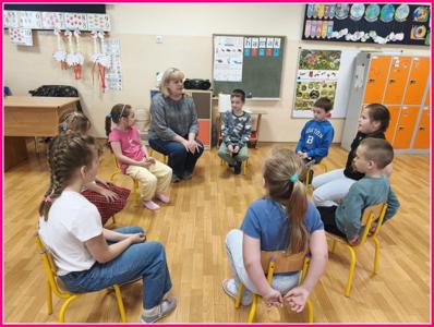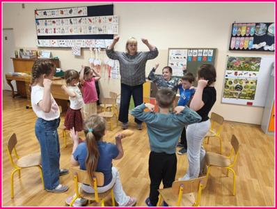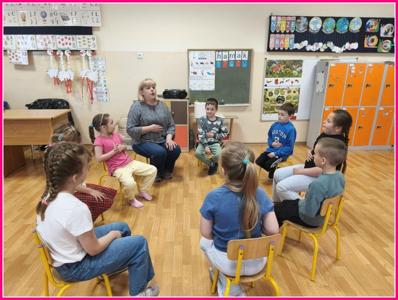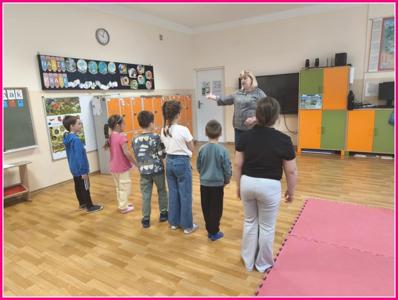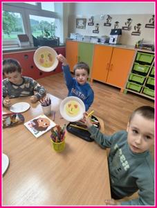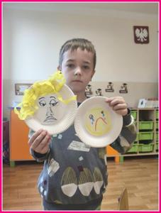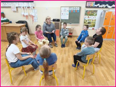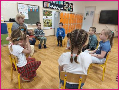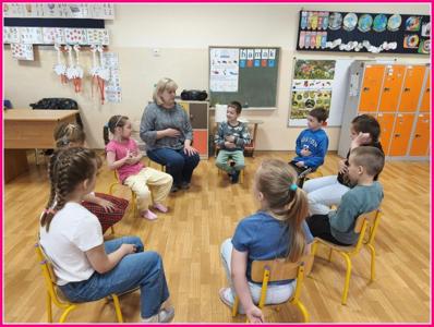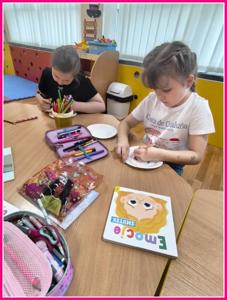 Dnia 29.05.2025r odbyły się zajęcia w klasie „0” z pedagogiem szkolnym/specjalnym p. Anną Baj. Zajęcia miały na celu rozwijanie kompetencji emocjonalnych. Podczas zajęć dzieci dowiedziały się dlaczego emocje są tak ważne w naszym życiu, uczyły się ich rozpoznawania i wyrażania za pomocą mimiki twarzy. Poznały techniki radzenia sobie ze złością za pomocą oddechu, myśli i ciała. Ćwiczenia: „Koci trening”, „Relaks siłacza”, „Drzewo zapuszcza korzenie” i relaksacja „Wodospad spokoju” pozwoliły rozładować negatywne emocje i dostarczyły wiele zabawy i uśmiechu. Następnie dzieci wykonały samodzielnie przepiękne buźki przestawiające różne emocje, które chętnie potem naśladowały w zabawie.