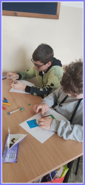 Powstały piękne, kolorowe prace. Uczniowie tworzyli z dużym zaangażowaniem.