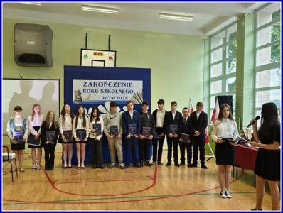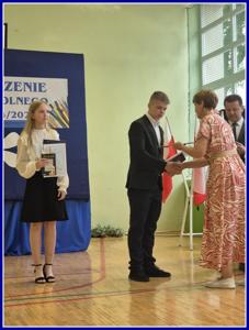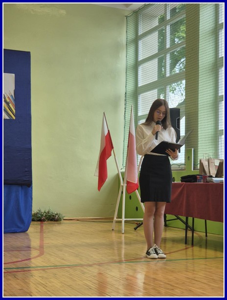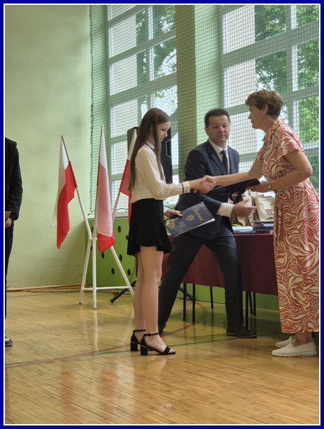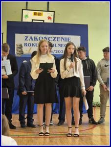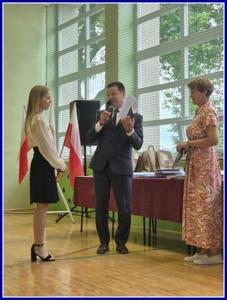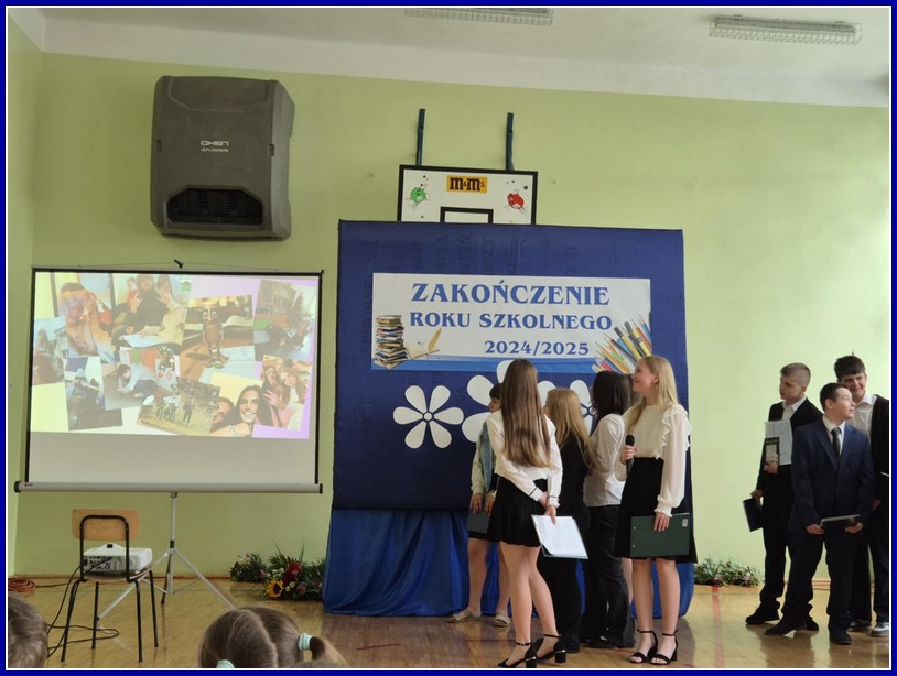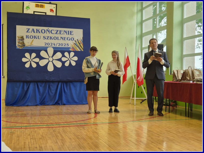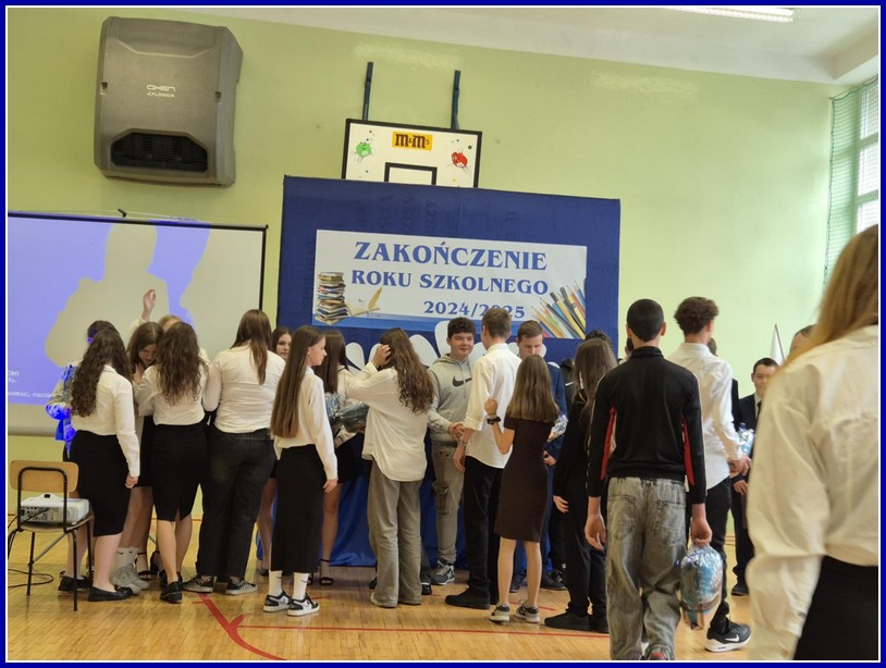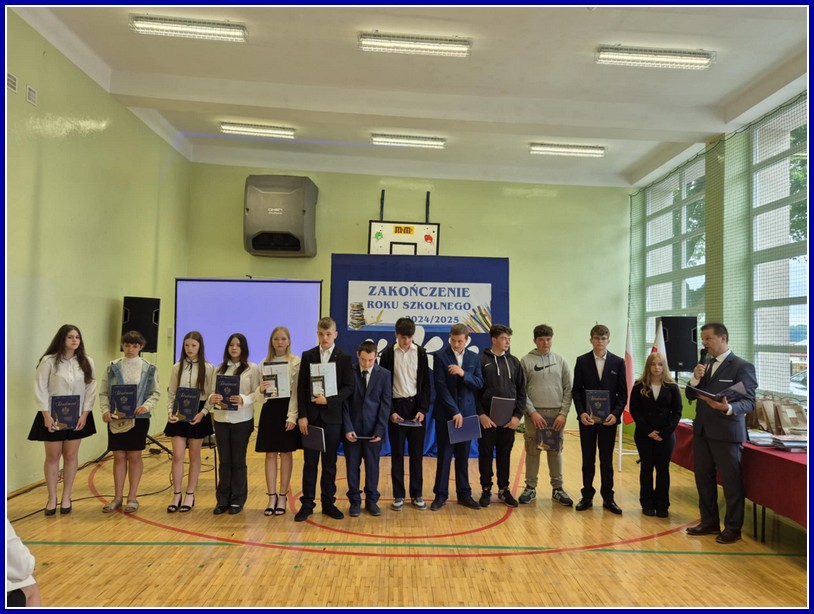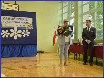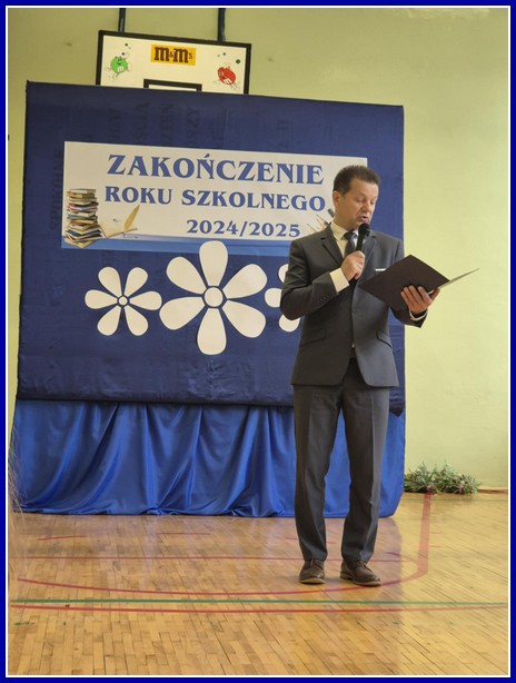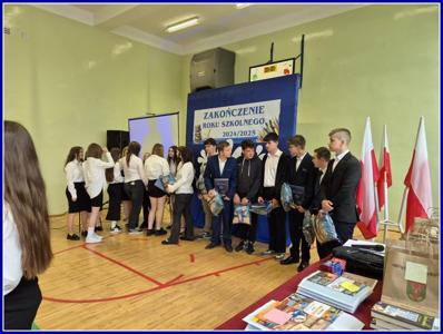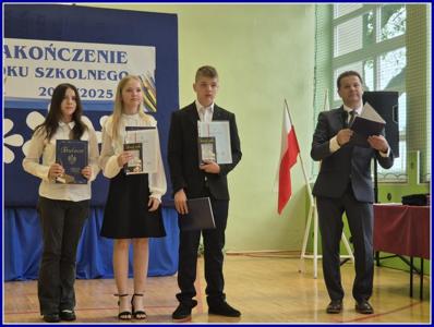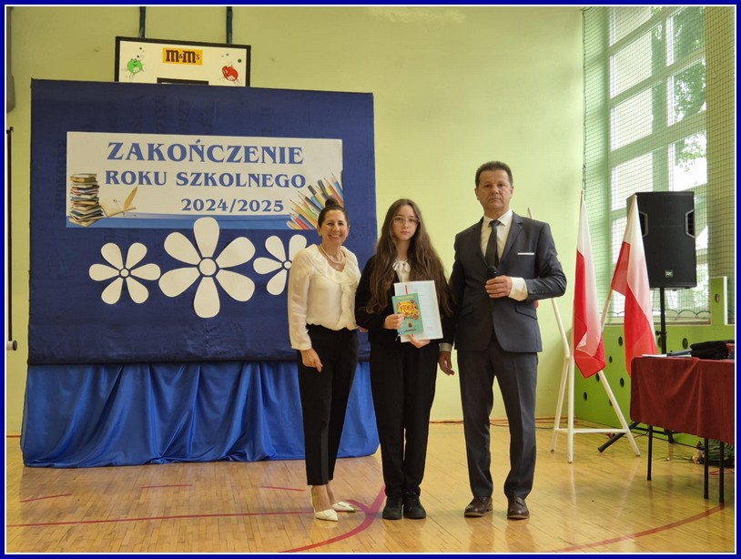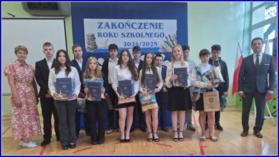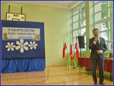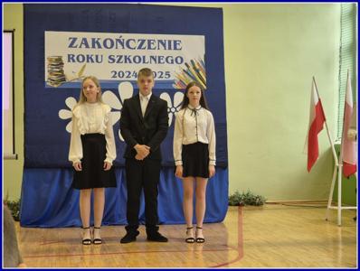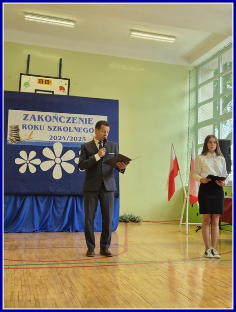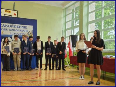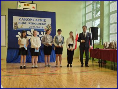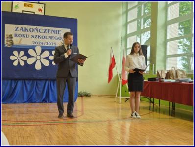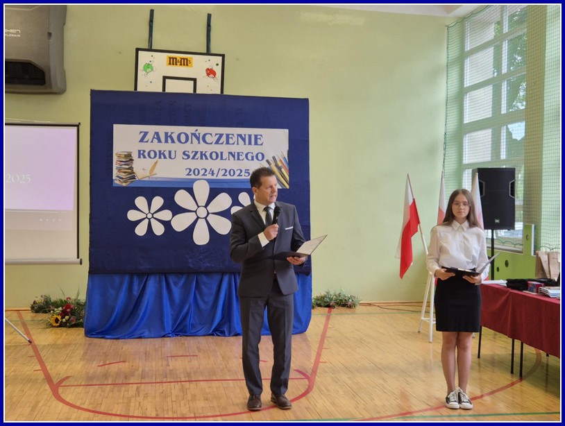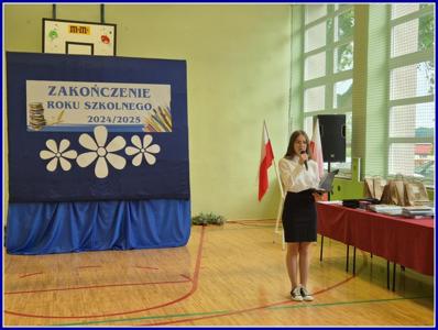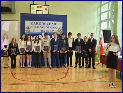 27 czerwca 2025 roku społeczność naszej szkoły spotkała się na uroczystym zakończeniu roku szkolnego. Tradycyjnie rozpoczęto je wprowadzeniem pocztu sztandarowego i odśpiewaniem hymnu narodowego. Następnie przewodnicząca Samorządu Uczniowskiego, Lena Skrzypczak, złożyła Dyrektorowi raport o gotowości uczniów do rozpoczęcia uroczystości. Pan Dyrektor w swoim przemówieniu podsumował mijający rok szkolny, dziękując nauczycielom, uczniom i rodzicom za współpracę, trud i zaangażowanie.
