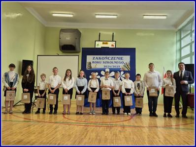 Podczas uroczystości uhonorowano również uczniów klas I–VII, którzy wyróżnili się w nauce, konkursach i działalności społecznej. Wręczono świadectwa z wyróżnieniem oraz nagrody za szczególne osiągnięcia. Zwieńczeniem wydarzenia były życzenia bezpiecznych, radosnych i pełnych przygód wakacji skierowane do całej społeczności szkolnej. Dziękujemy wszystkim za obecność i wspólnie spędzony rok. Do zobaczenia we wrześniu!