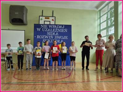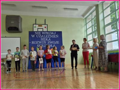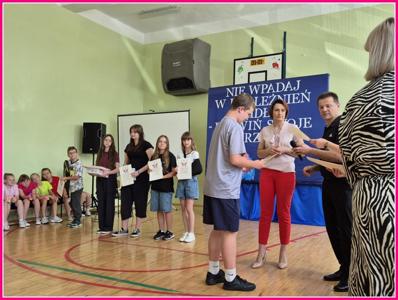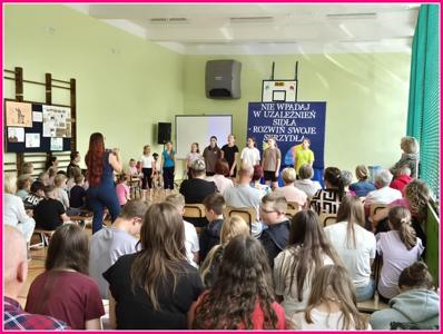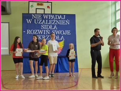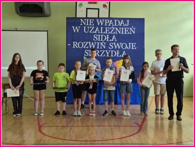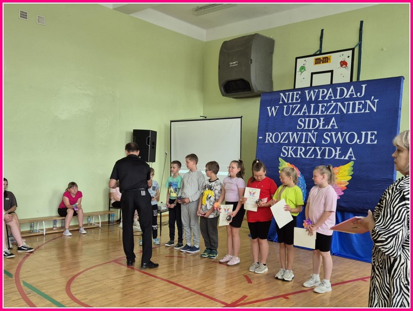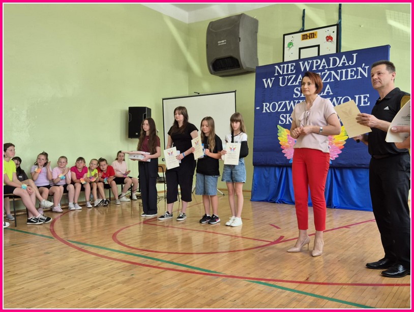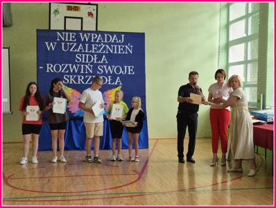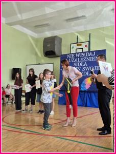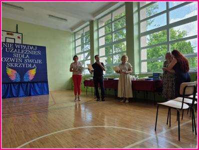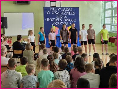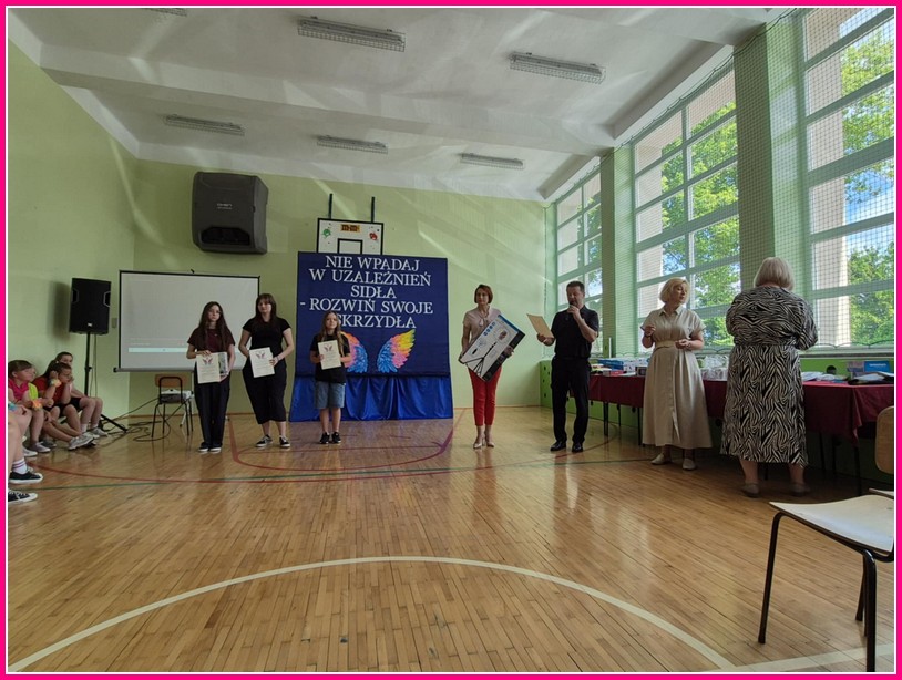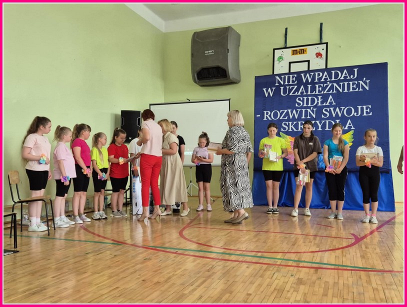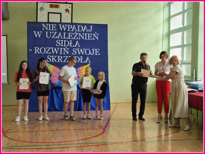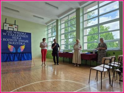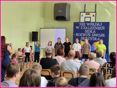 W dniu 24czerwca 2025 r. w naszej szkole odbyło się uroczyste podsumowanie projektu profilaktyczno-edukacyjnego pod hasłem: „Nie wpadaj w uzależnień sidła – rozwiń swoje skrzydła”. W wydarzeniu uczestniczyli zaproszeni goście – Wójt Gminy Trzeszczany p. Aneta Karpiuk,członkowie Gminnej Komisji ds. Rozwiązywania Problemów Alkoholowych: p. Anna Maciuk, p. Anna Gorczyńska, p. Agnieszka Markowska, p. Maria Nowosad, p. Regina Kossakowska, przewodnicząca Rady Rodziców p. Adriana Marciniak, rodzice, nauczyciele i uczniowie naszej szkoły.