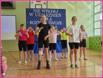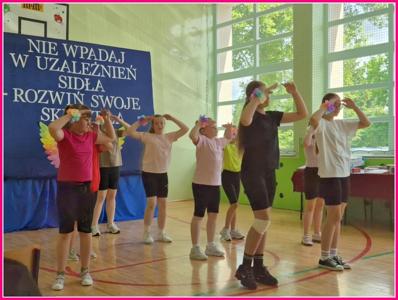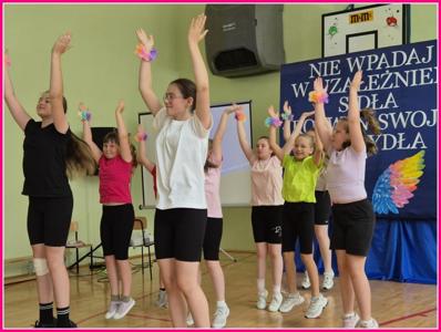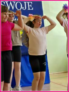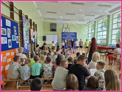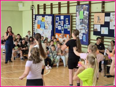 Uroczystość zakończył radosny taniec: „Myśl pozytywnie” oraz finałowa piosenka „Na raz, na dwa” w wykonaniu szkolnego chóru.