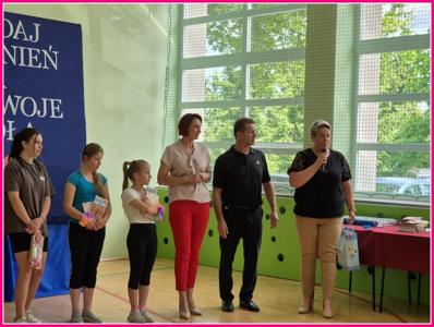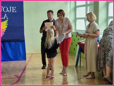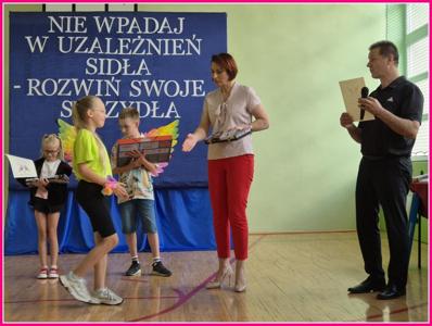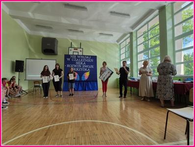 Nagrody i dyplomy za udział w konkursach, przedsięwzięciach i części artystycznej podsumowującej projekt wręczali: Dyrektor szkoły p. Andrzej Pachla wraz Wójt Gminy Trzeszczany p. Aneta Karpiuk.