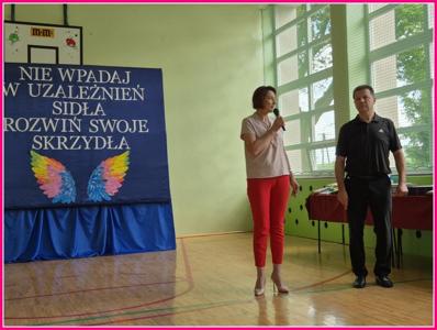 Na zakończenie głos zabrał Pan Dyrektor, dziękując wszystkim za udział i podkreślając wartość wspólnej pracy nad budowaniem zdrowych postaw wśród młodzieży a szczególne podziękowania skierował do Pani Wójt i obecnych przedstawicieli komisji do spraw rozwiązywania problemów alkoholowych i za sfinansowanie projektu.