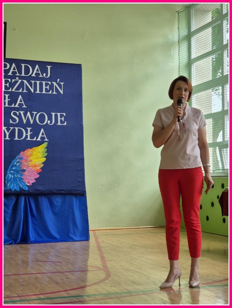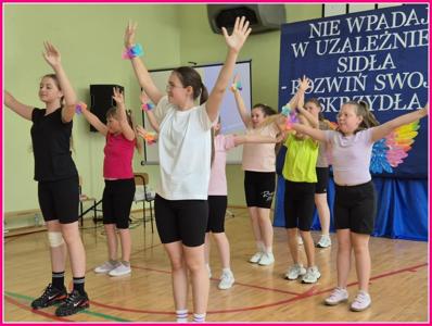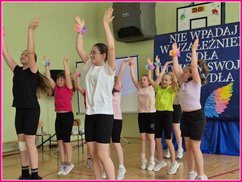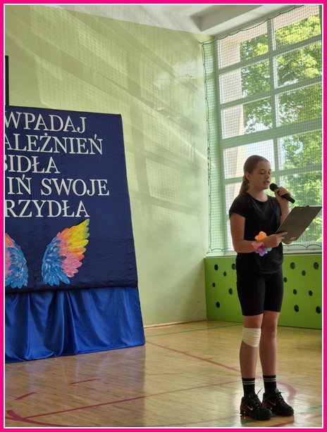 W części artystycznej uczniowie zaprezentowali również taniec „Nasze skrzydła”, który symbolicznie podkreślał ideę rozwoju i pozytywnych zmian. Głos ponownie zabrały narratorki, podkreślając wartość relacji, życzliwości i wspólnego działania.