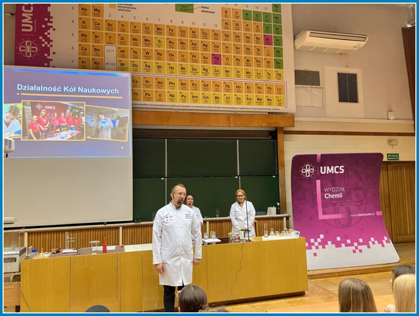 22 września 2025 roku uczniowie klasy VII i VIII uczestniczyli w wyjeździe edukacyjnym na Wydział Chemii Uniwersytetu Marii Curie-Skłodowskiej w Lublinie, gdzie wzięli udział w dwóch wyjątkowych spotkaniach: warsztatach chemicznych oraz pokazach chemicznych.