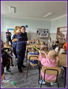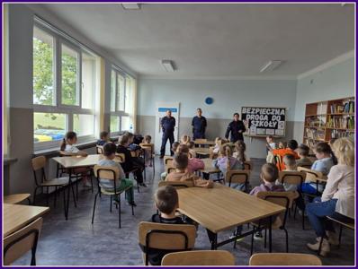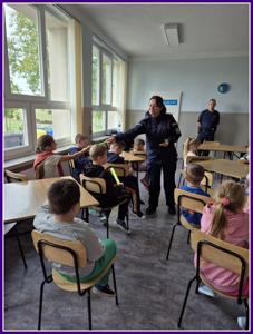 Podczas spotkania policjanci przypomnieli najmłodszym uczniom najważniejsze zasady bezpiecznego poruszania się po drodze, a także ogólne zasady dotyczące bezpieczeństwa. Dzieci dowiedziały się, jak unikać niebezpiecznych sytuacji i jak reagować, gdy się one pojawią.