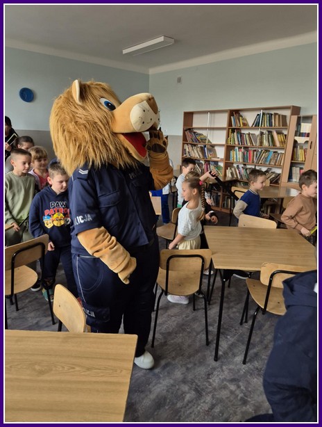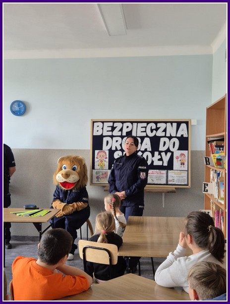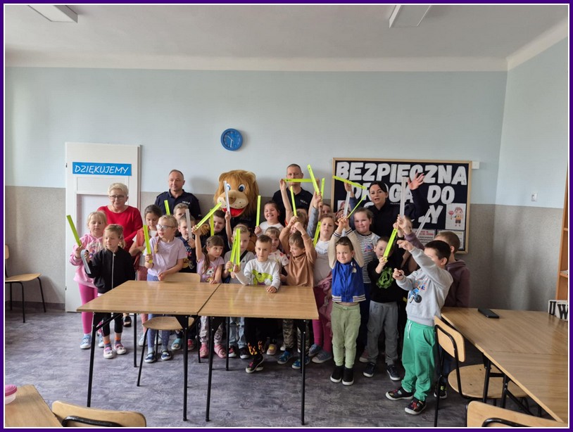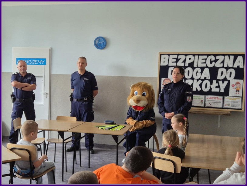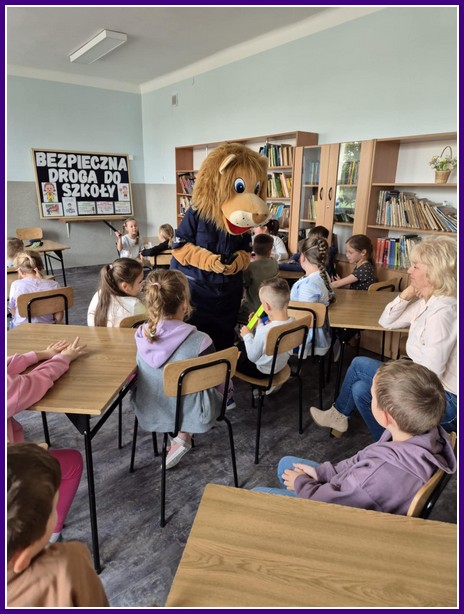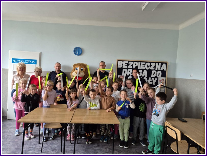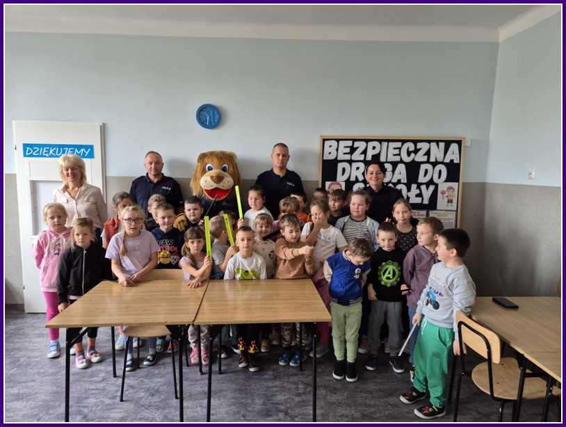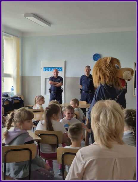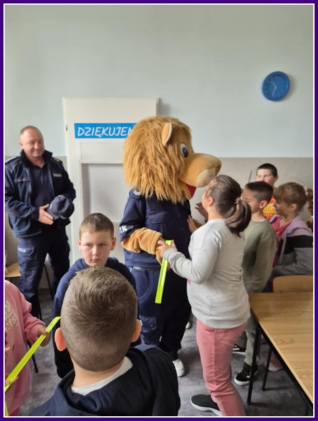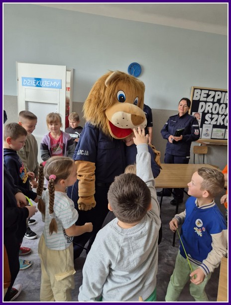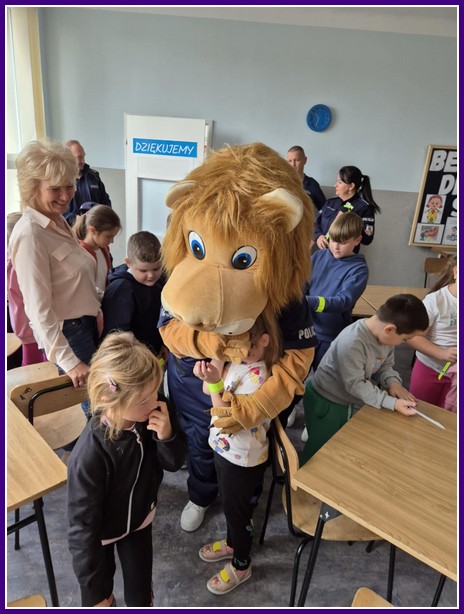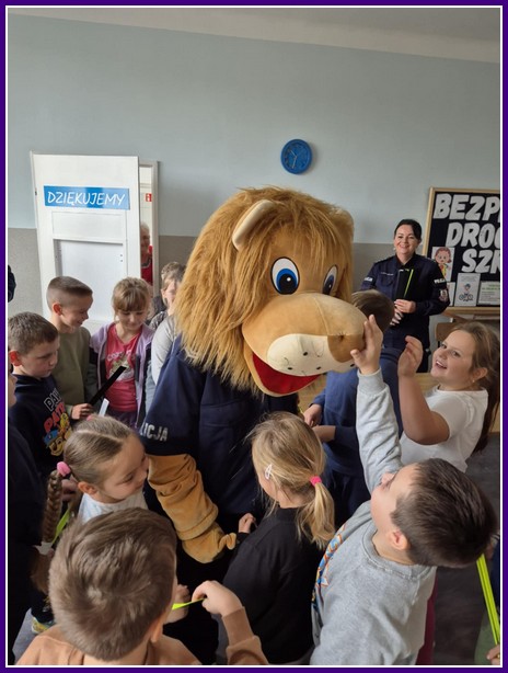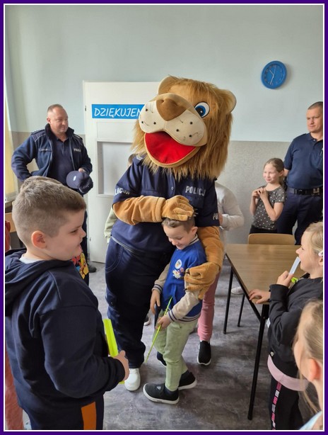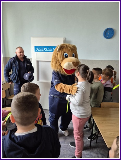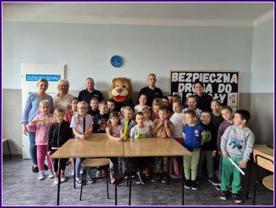 Serdecznie dziękujemy funkcjonariuszom za poświęcony czas, ciekawe spotkanie, cenne wskazówki oraz miłą niespodziankę w postaci odblasków i wizyty sympatycznego policyjnego lwa.