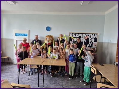 Z okazji obchodzonego właśnie Dnia Odblasków, policjanci podarowali każdemu uczniowi odblaskowe opaski na rękę i podkreślili, jak ogromne znaczenie ma ich noszenie – szczególnie jesienią i zimą, kiedy szybciej zapada zmrok.