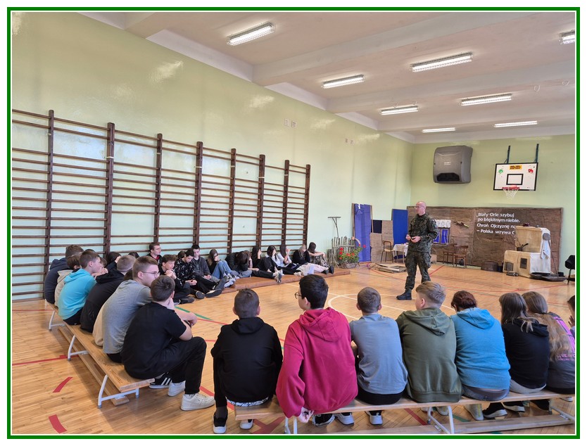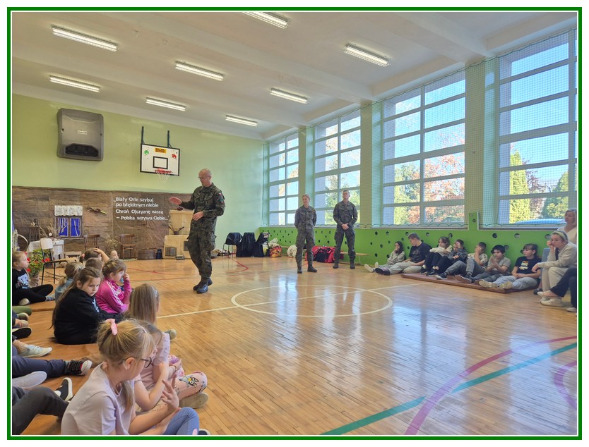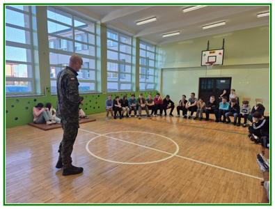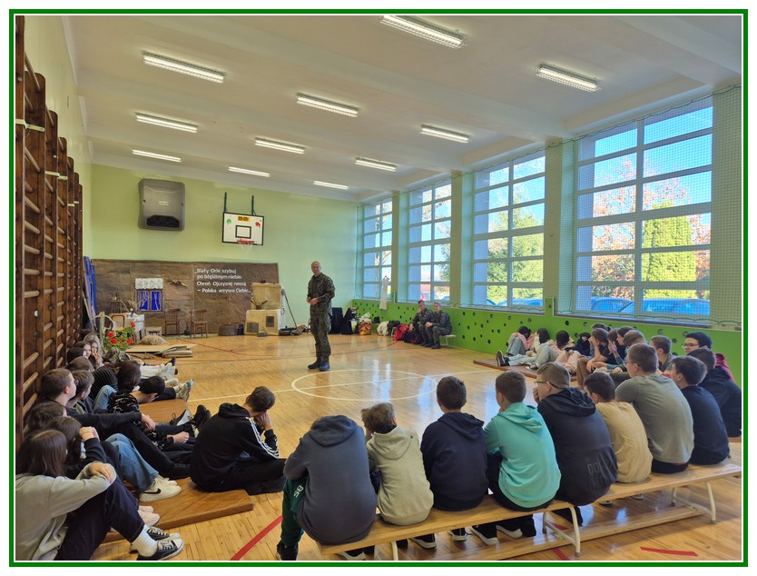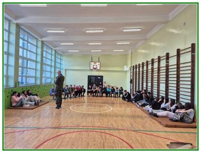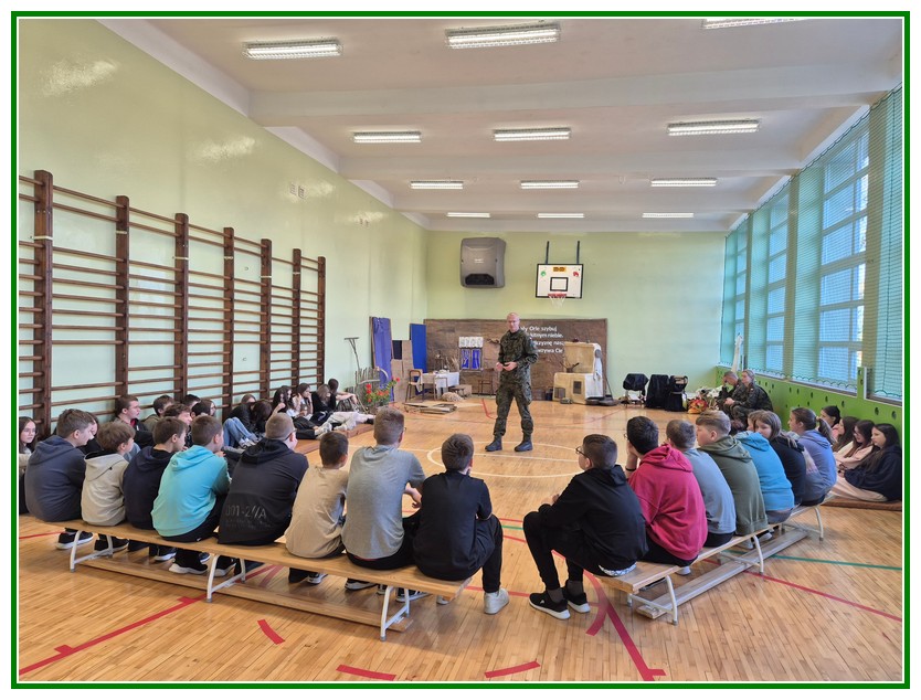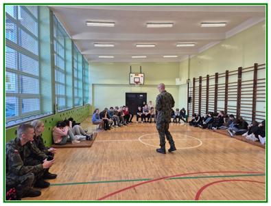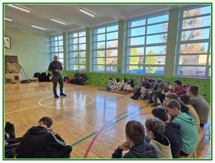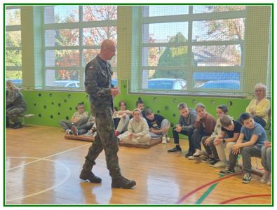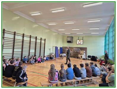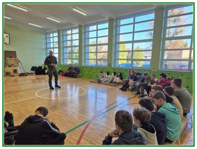 W środę, 5 listopada, w naszej szkole odbyły się zajęcia w ramach ogólnopolskiego programu „Edukacja z wojskiem”. To już drugi raz, kiedy nasza szkoła bierze udział w tej kampanii, której celem jest kształtowanie postaw proobronnych oraz podnoszenie świadomości w zakresie bezpieczeństwa wśród dzieci i młodzieży.