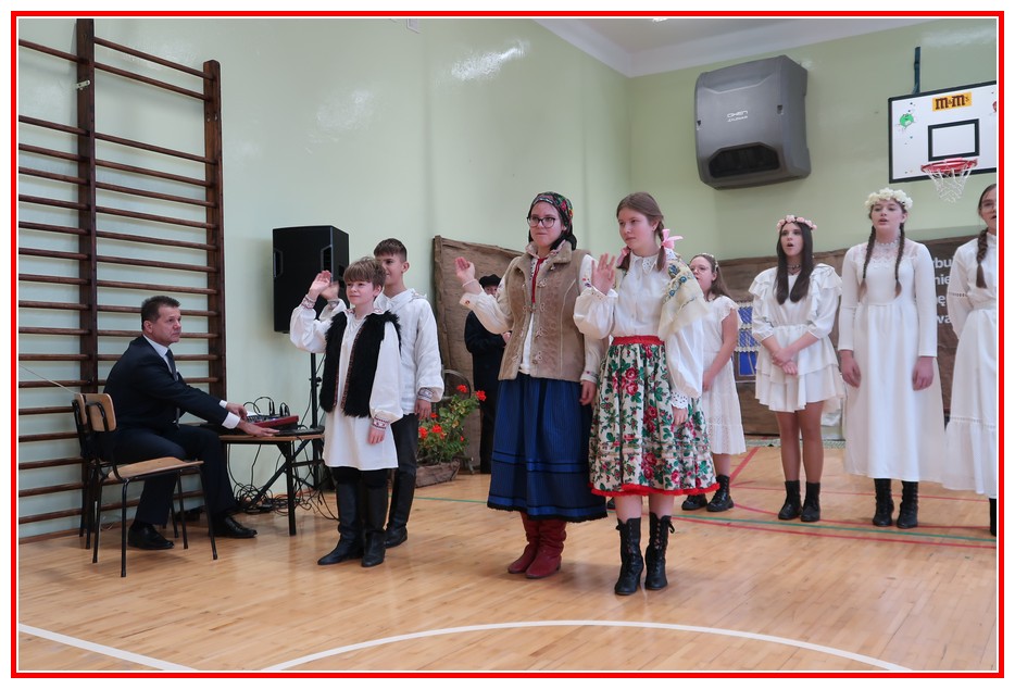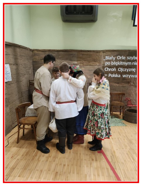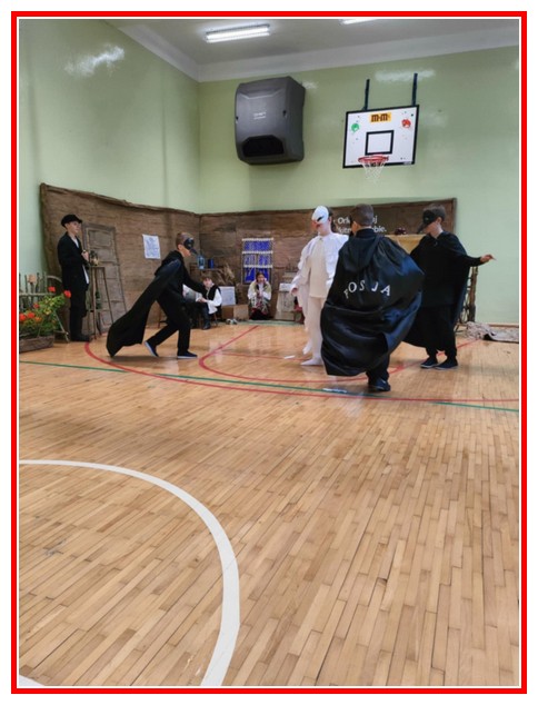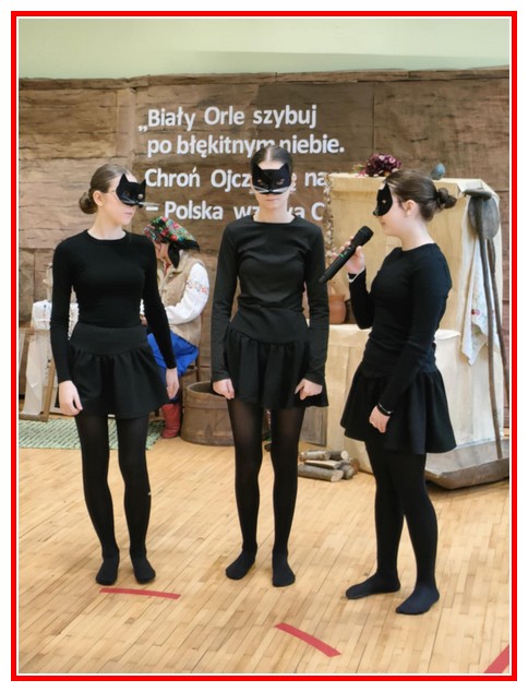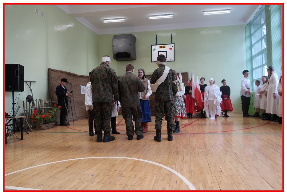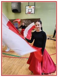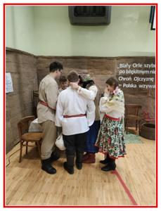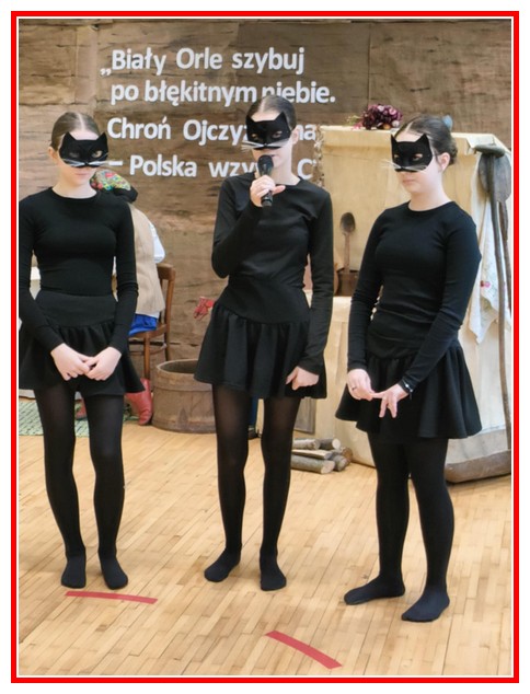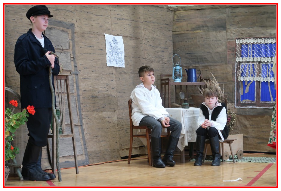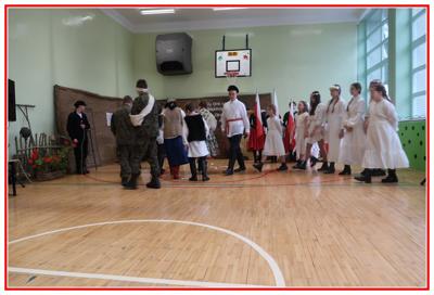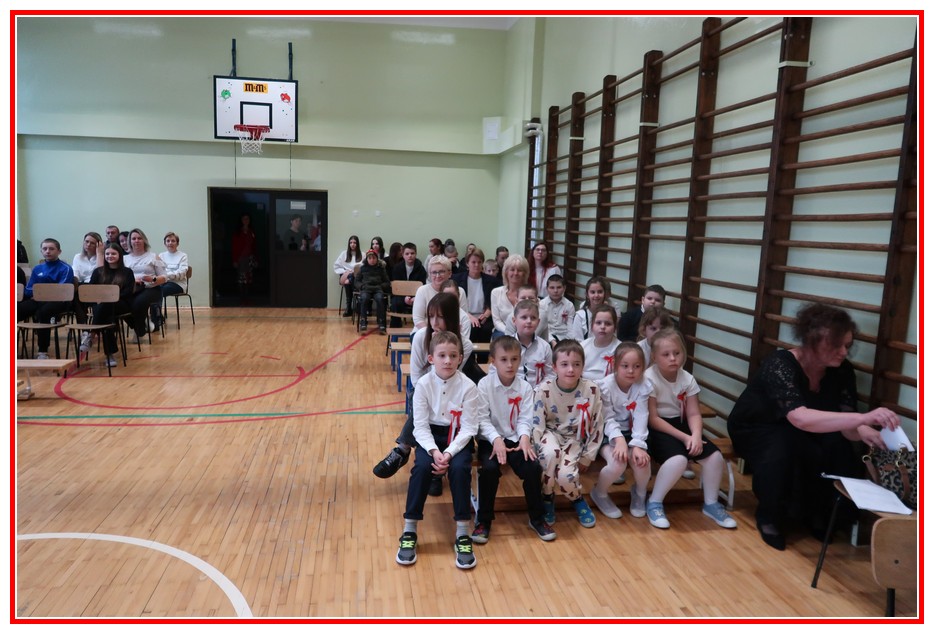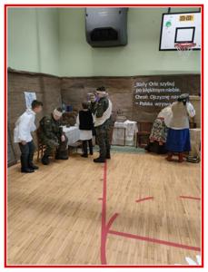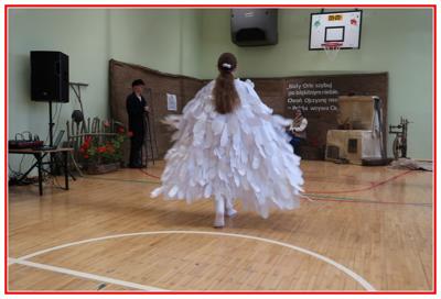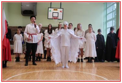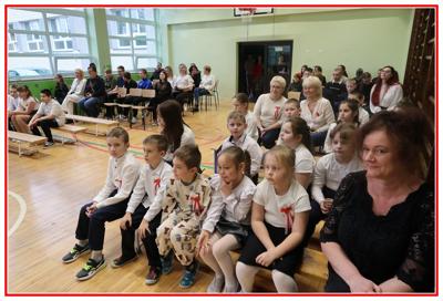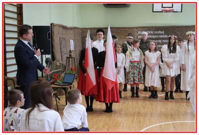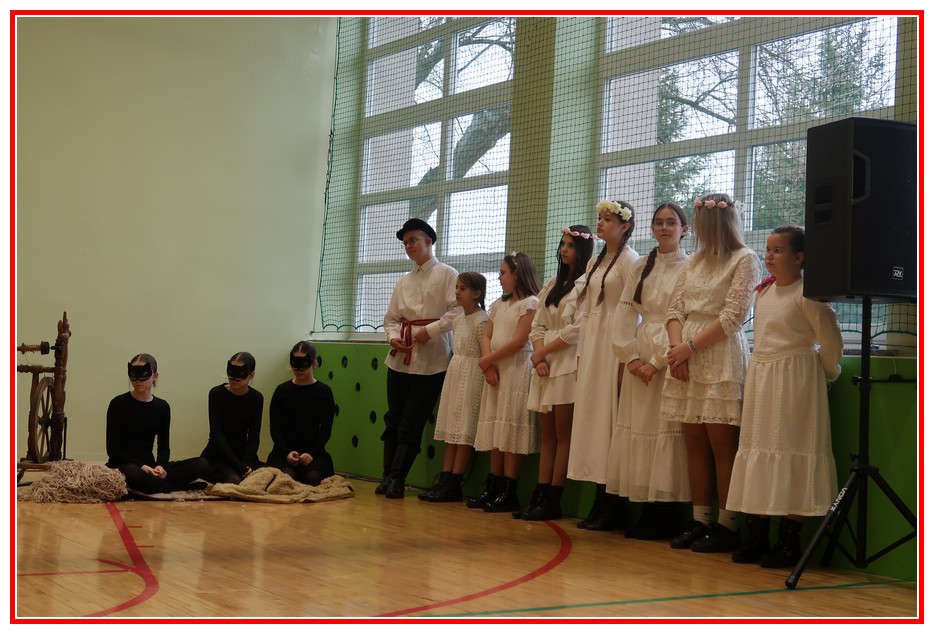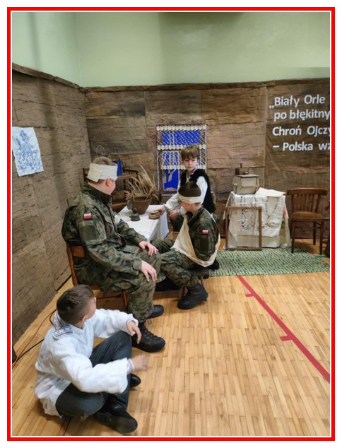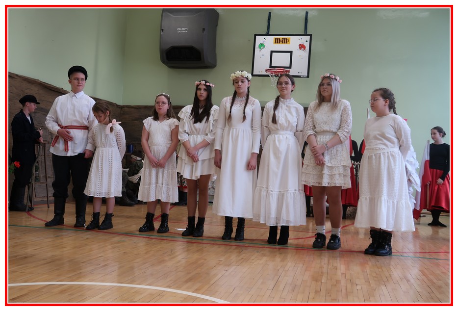 Z okazji rocznicy odzyskania Niepodległości przez Polskę, uczniowie zaprezentowali spektakl teatralny pt.”Pisk białego Orła”. Fabuła przedstawienia osnuta została wokół losów wiejskiej rodziny, która w czasie I wojny światowej przeżyła wojenną traumę – wymarsz ojca i jednego z synów na front. Ludzie ci ukrywali w swoim domu poetę, który odwołując się do literatury i poezji okresu zaborów, podtrzymywał i umacniał głęboki patriotyzm domowników. W wielu sytuacjach odwoływał się do tragicznej historii naszego państwa. Symbolem wolnej Polski staje się biały orzeł, którego pisk, słyszalny w duszy Polaków, nie pozwalał tracić nadziei na wolność. Jednak oprócz prawdziwych patriotów byli i tacy, którym było obojętne, czy Polska jest wolna, czy nie, „byle był spokój i miska pełna”. Taką postawę reprezentowały koty. Spektakl został urozmaicony pantomimą ukazującą Legendę o Białym Orle. Była to w nietypowy sposób opowiedziana historia utraty i odzyskania niepodległości przez naszą Ojczyznę. Sam moment zmartwychwstania Polski został przedstawiony w formie układu tanecznego z flagami. Przedstawienie odbywało się przy nastrojowych, dobranych do tematyki patriotycznej piosenkach, wykonanych przez szkolny zespół wokalny. Myślą przewodnią całości były słowa z pieśni Szybuj Orle: „Biały Orle szybuj po błękitnym niebie . Chroń Ojczyznę naszą- Polska wzywa Ciebie”
