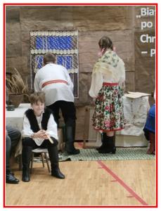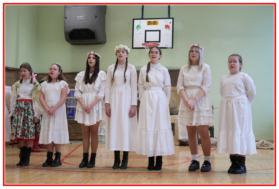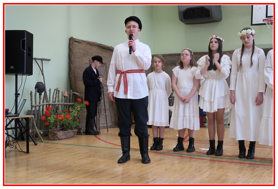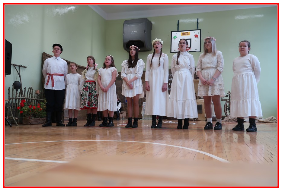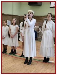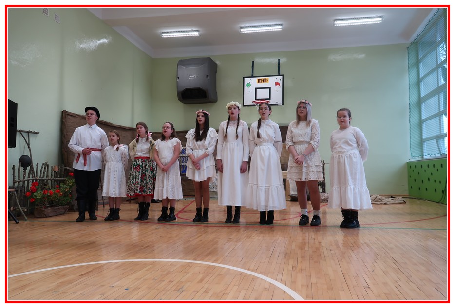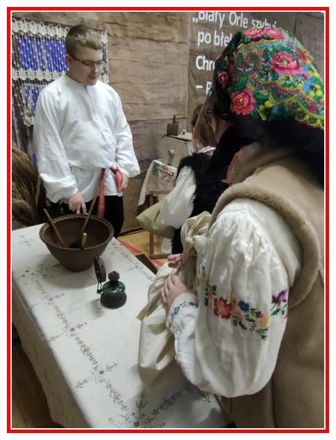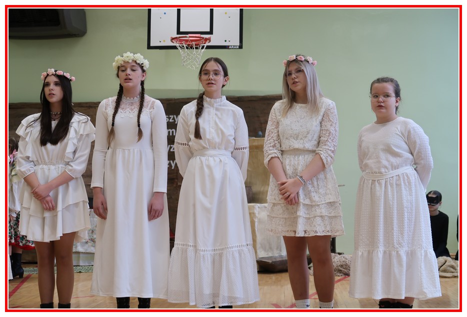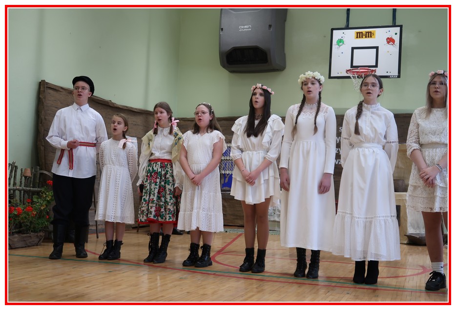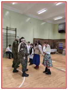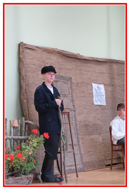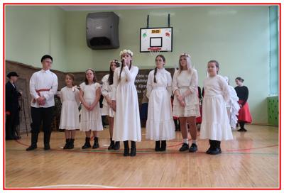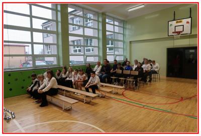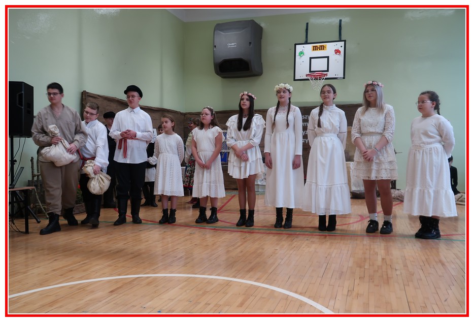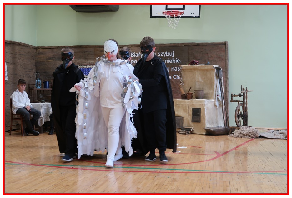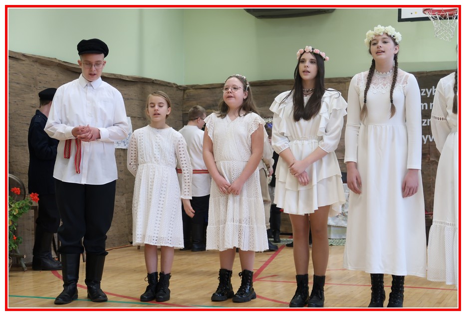 Z okazji rocznicy odzyskania Niepodległości przez Polskę, uczniowie zaprezentowali spektakl teatralny pt.”Pisk białego Orła”. Fabuła przedstawienia osnuta została wokół losów wiejskiej rodziny, która w czasie I wojny światowej przeżyła wojenną traumę – wymarsz ojca i jednego z synów na front. Ludzie ci ukrywali w swoim domu poetę, który odwołując się do literatury i poezji okresu zaborów, podtrzymywał i umacniał głęboki patriotyzm domowników. W wielu sytuacjach odwoływał się do tragicznej historii naszego państwa. Symbolem wolnej Polski staje się biały orzeł, którego pisk, słyszalny w duszy Polaków, nie pozwalał tracić nadziei na wolność. Jednak oprócz prawdziwych patriotów byli i tacy, którym było obojętne, czy Polska jest wolna, czy nie, „byle był spokój i miska pełna”. Taką postawę reprezentowały koty. Spektakl został urozmaicony pantomimą ukazującą Legendę o Białym Orle. Była to w nietypowy sposób opowiedziana historia utraty i odzyskania niepodległości przez naszą Ojczyznę. Sam moment zmartwychwstania Polski został przedstawiony w formie układu tanecznego z flagami. Przedstawienie odbywało się przy nastrojowych, dobranych do tematyki patriotycznej piosenkach, wykonanych przez szkolny zespół wokalny. Myślą przewodnią całości były słowa z pieśni Szybuj Orle: „Biały Orle szybuj po błękitnym niebie . Chroń Ojczyznę naszą- Polska wzywa Ciebie”