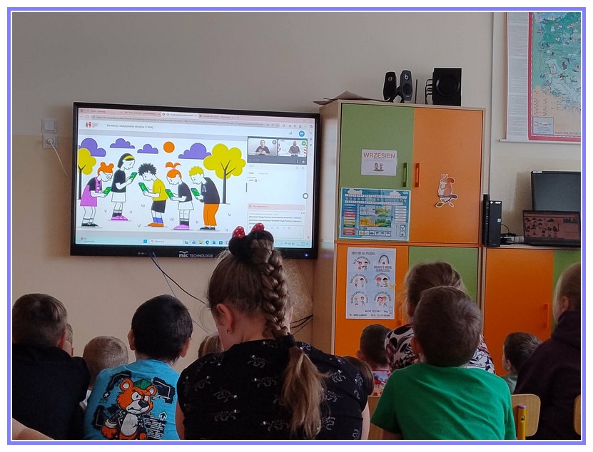 Uczniowie klas 0, I, II, III zastanawiali się, ile czasu spędzają przed ekranem i jakie emocje temu towarzyszą. Dzięki ćwiczeniom i rozmowie o codziennych nawykach dzieci nauczyły się rozpoznawać objawy nadużywania Internetu. Poznały sposoby na zachowanie równowagi między czasem online i offline, m.in. . poprzez planowanie dnia i aktywności bez ekranów.