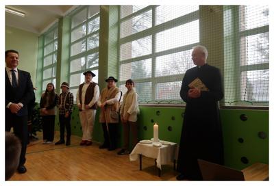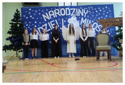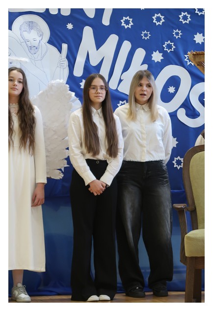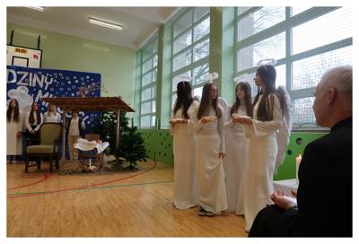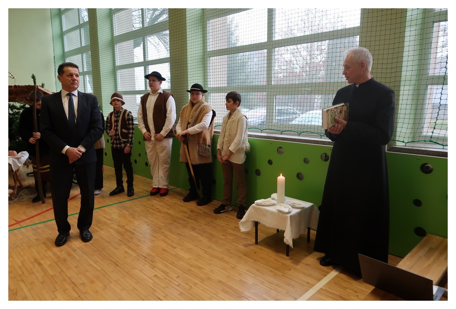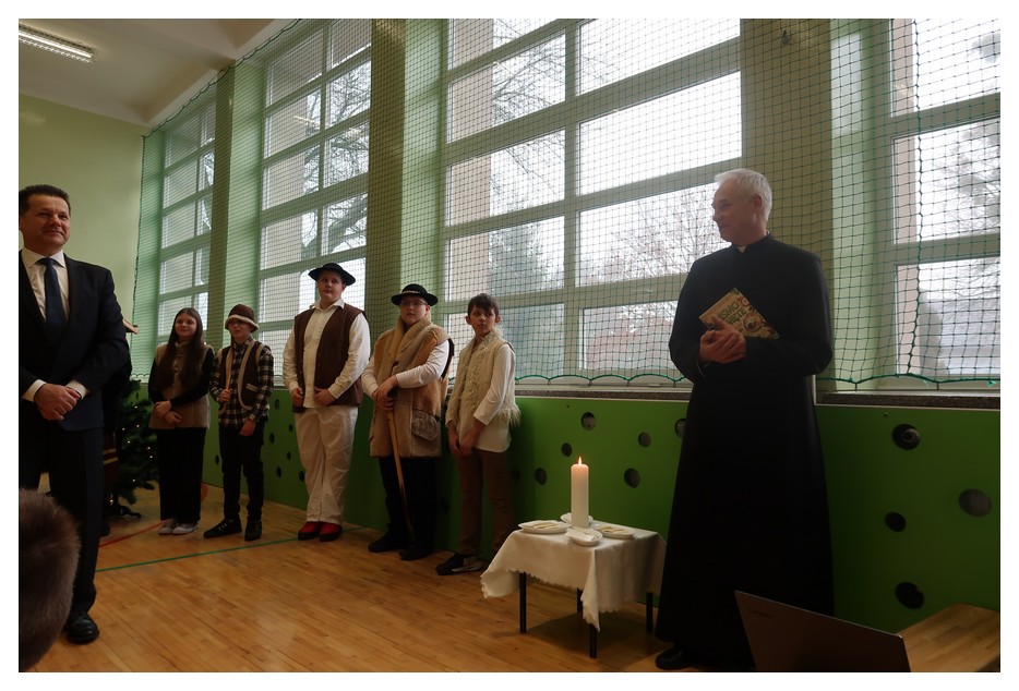 Na zakończenie części artystycznej Pan Dyrektor złożył wszystkim serdeczne życzenia z okazji zbliżających się Świąt Bożego Narodzenia oraz nadchodzącego Nowego Roku. Następnie ks. Jarosław Przyczyna poprowadził wspólną modlitwę, po której wszyscy zebrani – zgodnie z piękną tradycją – podzielili się opłatkiem, składając sobie świąteczne życzenia.