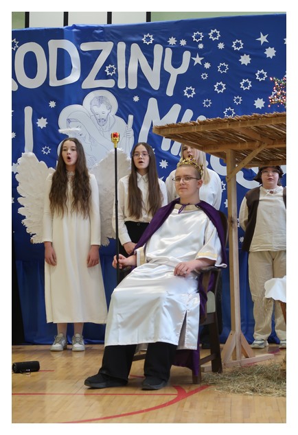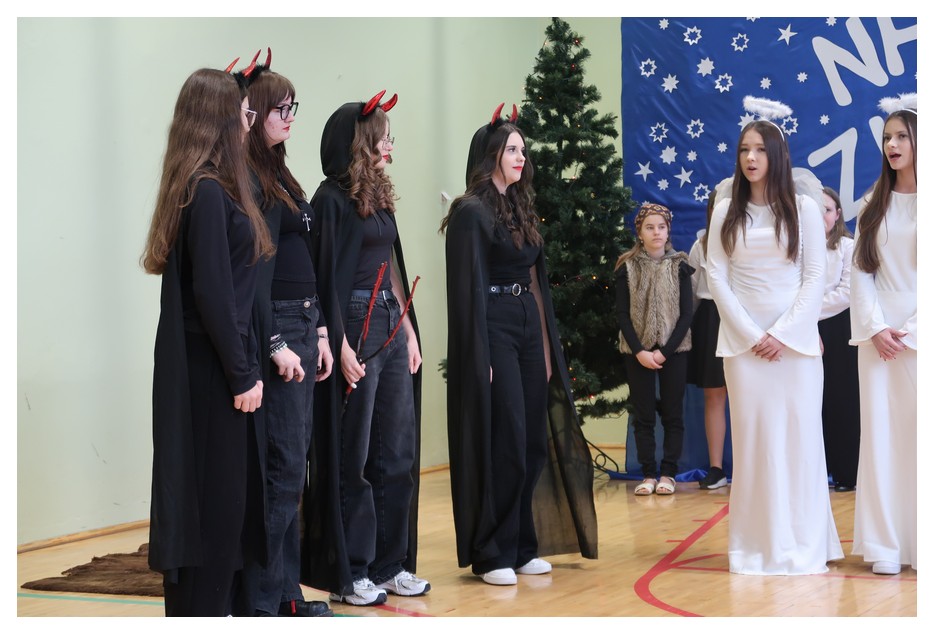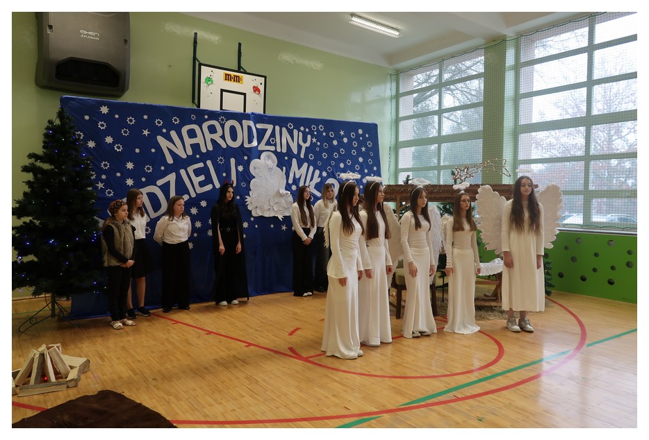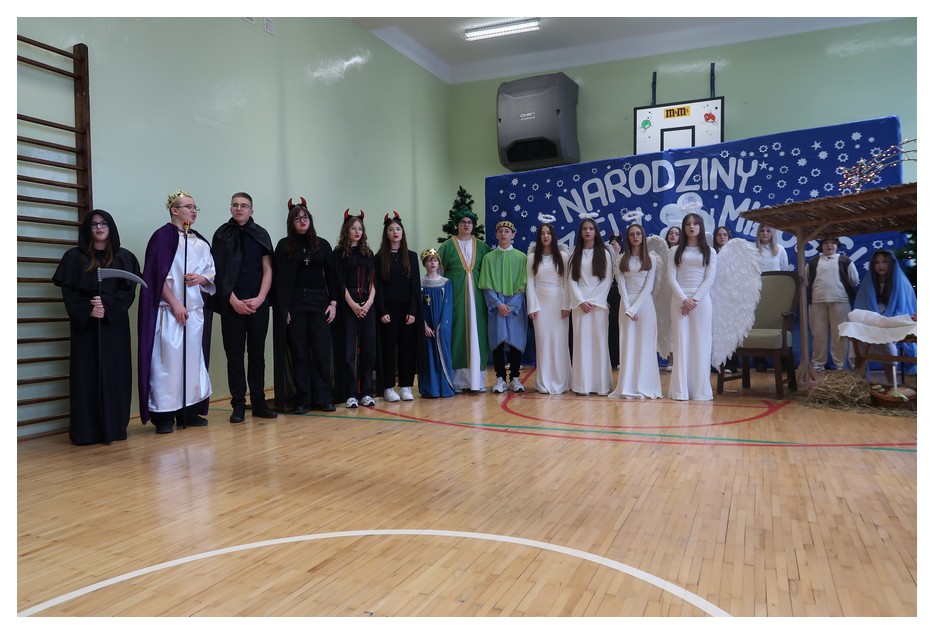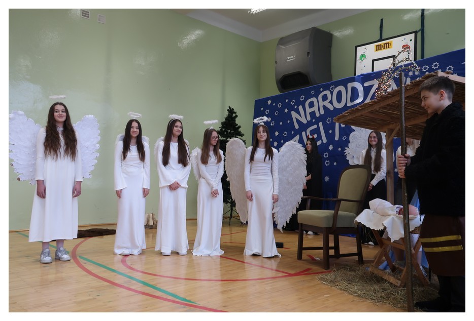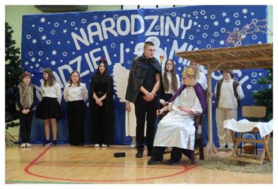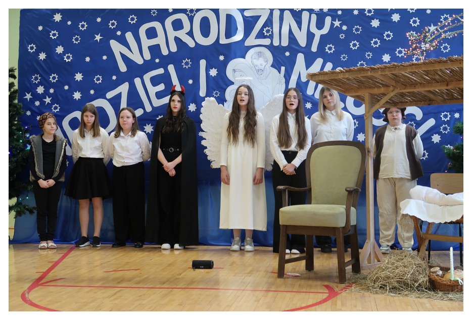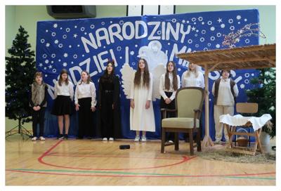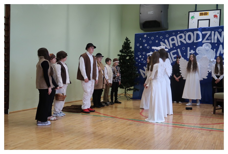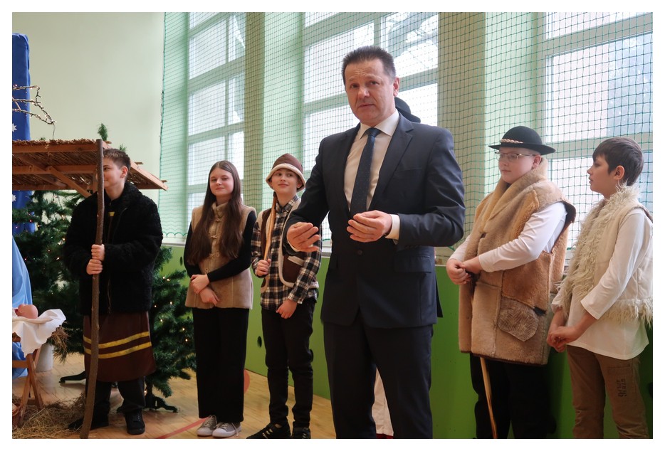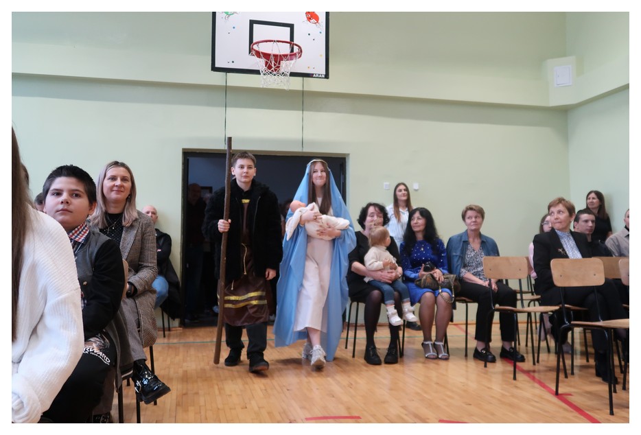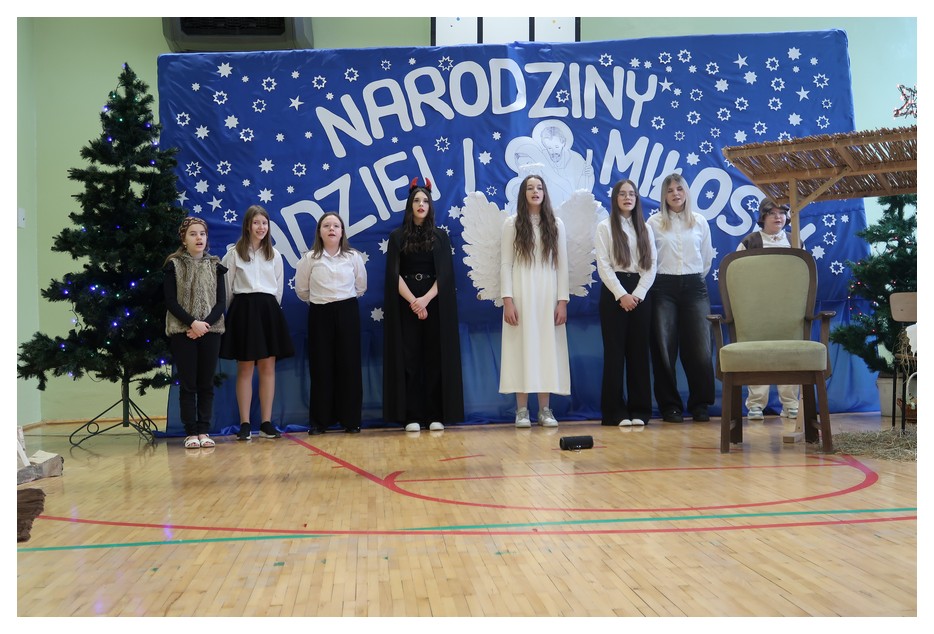 W piątek 19 grudnia w naszej szkole odbyły się tradycyjne jasełka, które wprowadziły całą społeczność szkolną w radosny i podniosły nastrój zbliżających się Świąt Bożego Narodzenia. Uroczystą akademię świąteczną przygotował Pan Mieczysław Ostaszewski wraz z uczniami klas IV–VIII. Wyjątkowy, świąteczny klimat uroczystości podkreśliła także piękna dekoracja, przygotowana przez Panią Wiesławę Martyniuk, która nadała szkolnej przestrzeni ciepły, bożonarodzeniowy charakter. Całość wydarzenia uświetnił piękny śpiew wspaniałych polskich kolęd i pastorałek w wykonaniu szkolnego zespołu wokalnego, prowadzonego przez Pana Dyrektora Andrzeja Pachlę. Występ dostarczył wielu wzruszeń i został nagrodzony gromkimi brawami.