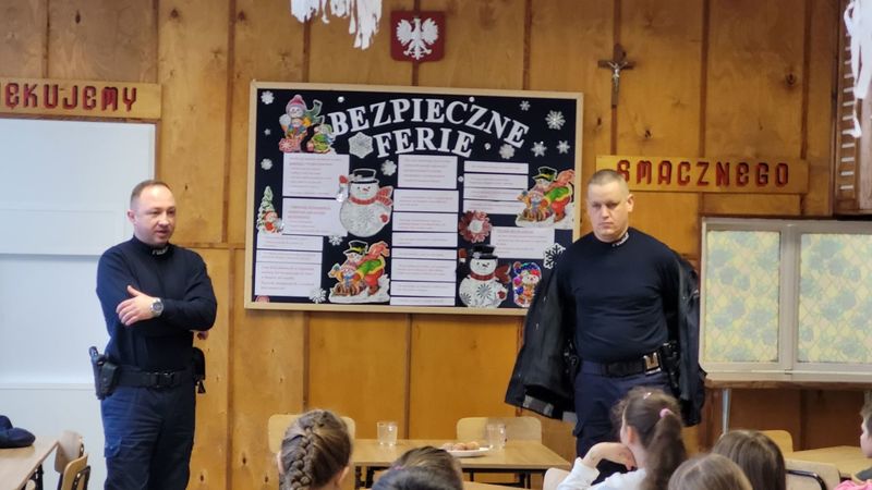 13.01.2023 Aktualności Prelekcja „Bezpieczne ferie zimowe”. Spotkanie z policjantem. Dbając o bezpieczeństwo naszych uczniów w czasie zbliżających się ferii 12 stycznia 2023 r. odbyło się spotkanie profilaktyczno - edukacyjne z funkcjonariuszami... Czytaj więcej