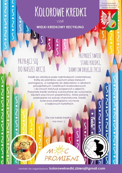 22.10.2021 Aktualności Przyłącz się do akcji "Kolorowe kredki" - przynieś... „Mamy fioła na punkcie kolorów, pomagania i tworzenia” – tak mówią o sobie ludzie, którzy wpadli na pomysł kredkowego recyklingu. Celem akcji jest niesienie... Czytaj więcej