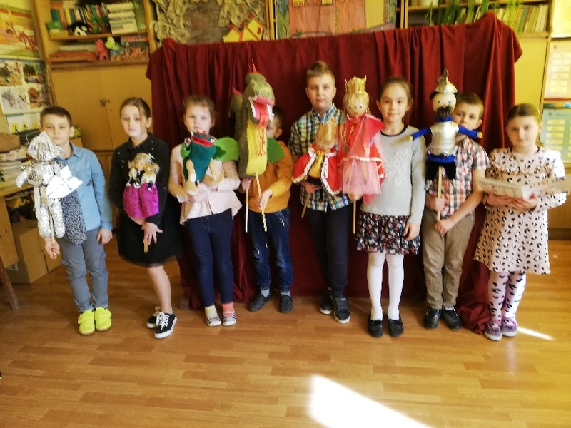 15 marca klasa II, pod kierunkiem wychowawczyni, pani Marii Ciesielczuk, przygotowała przedstawienie kukiełkowe p.t. ,,Bajka o smoku, królu, królewnie i ... nie zgadniecie o kim jeszcze....